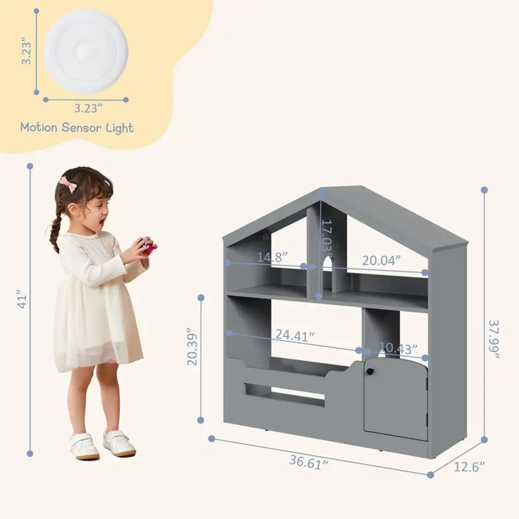 Odk 2-tier Kids Bookshelf With Motion Sensor Light - Wooden Book Shelf, Toy Storage Organizer, Book Rack For Kids Rooms, Classroom, Playing Room