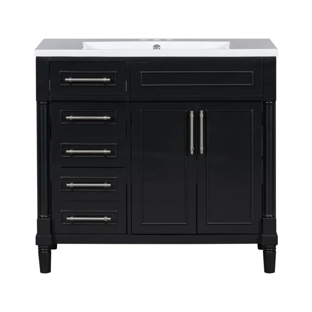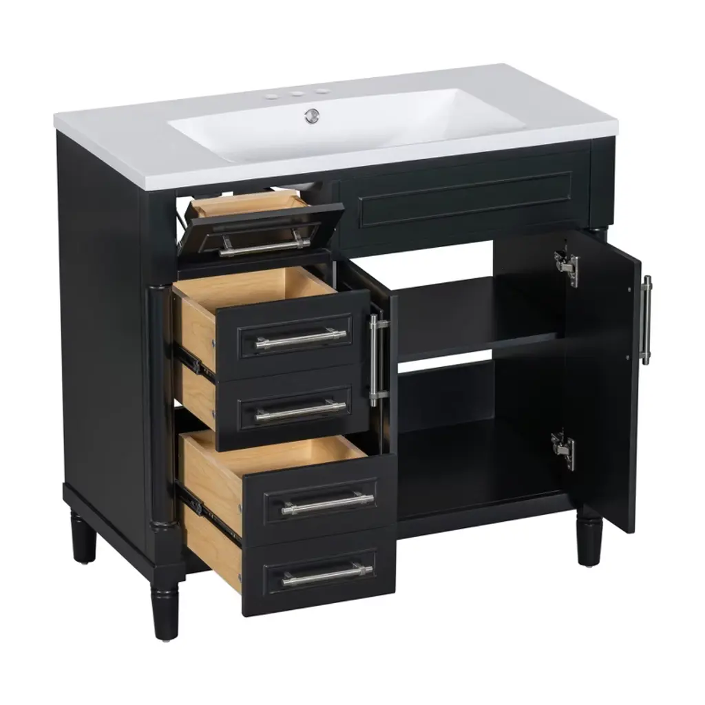 Okak 36" Modern Bathroom Vanity With Sink, Solid Wood Frame Bathroom Vanities With Cabinet Tip-out Drawer & Height Adjustable Shelf, Black