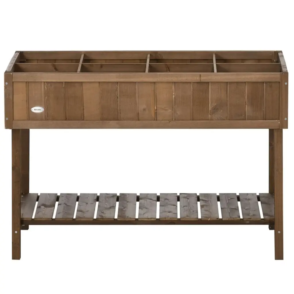 Okak Raised Garden Bed With 8 Pockets & Shelf, Wooden Elevated Outdoor Planter Box With Legs For Herbs/vegetables/flowers, Brown