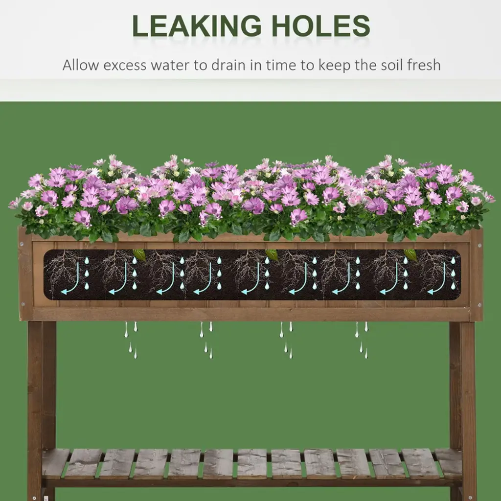 This raised planter bed is an instant herb garden with individual sections for herbs, flowers, or vegetables, preventing overcrowding. Made from weather-resistant fir wood, it’s lightweight enough to move during storms. The included storage shelf below offers space for gardening essentials. At an ergonomic height, it reduces back strain and protects plants from weeds and animals. Easy to assemble, this planter enhances gardening ease and plant protection.