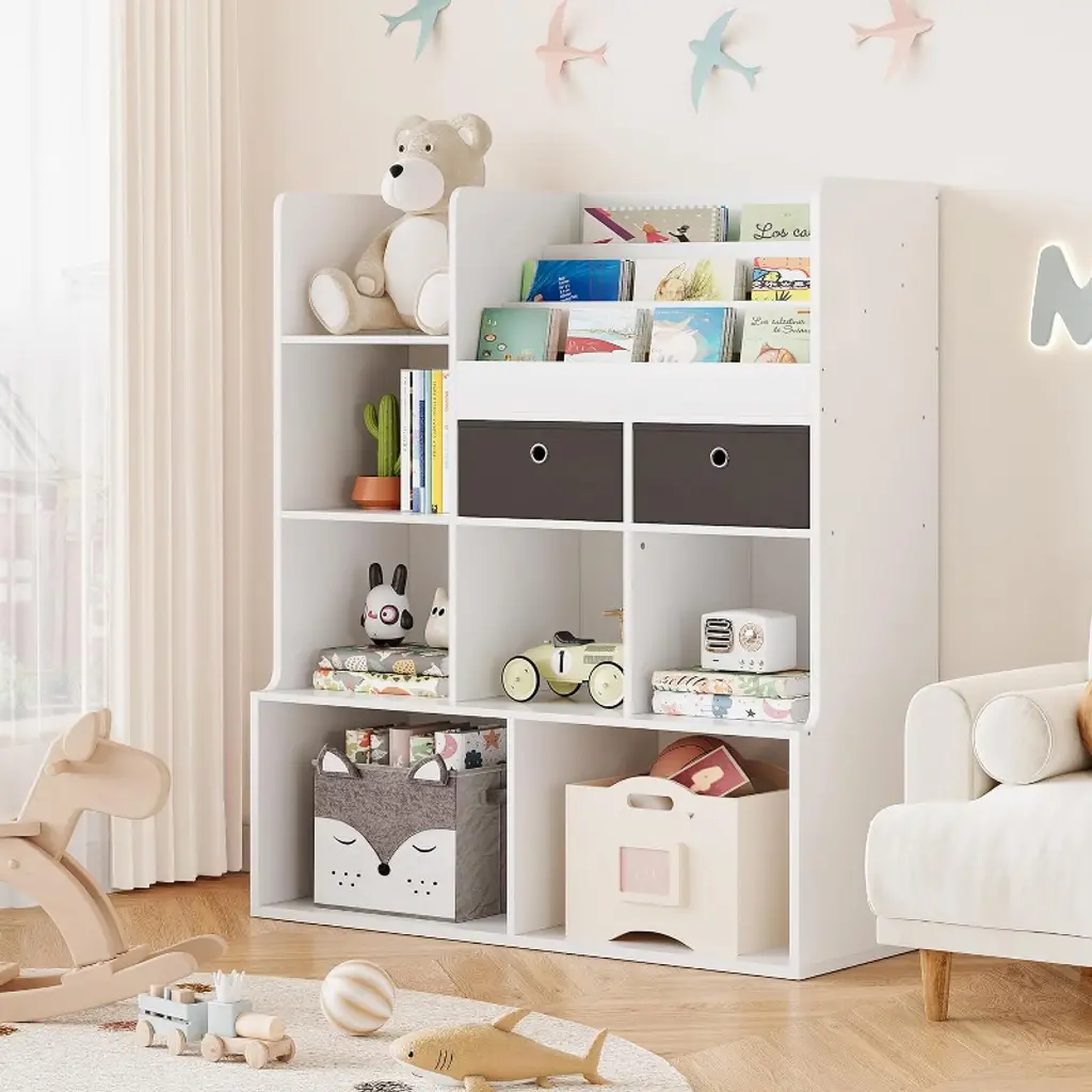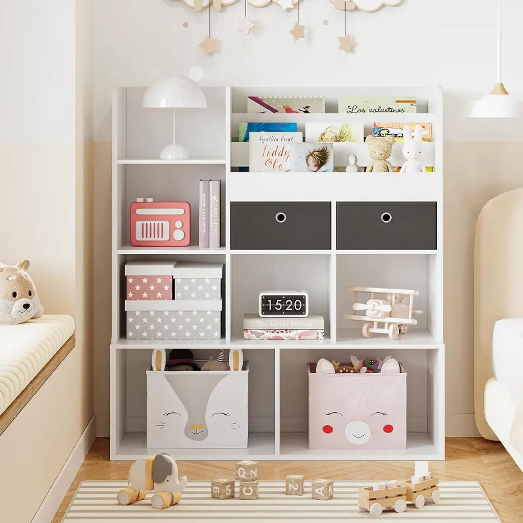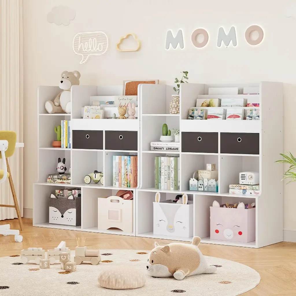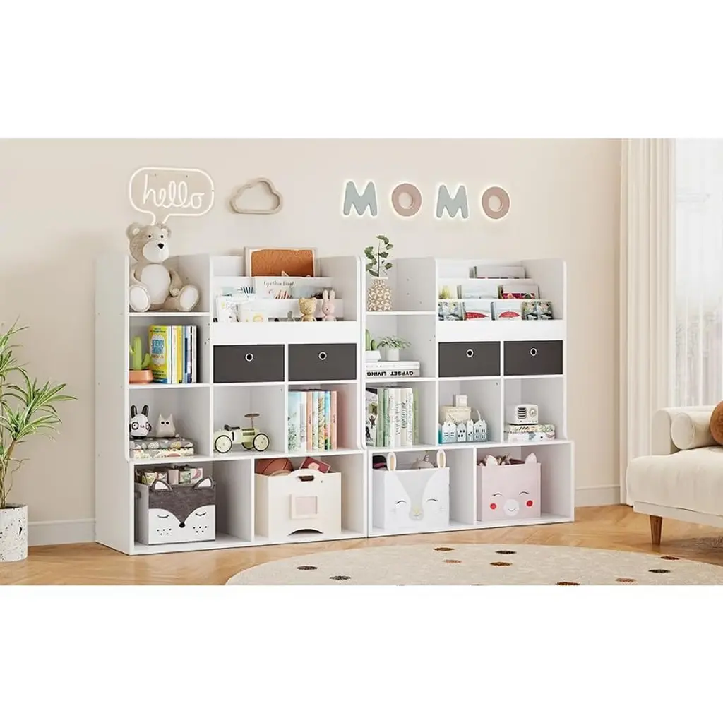 Open Shelf Bookcase and Bookshelf, Floor Standing 8 Cube Bookshelf with Storage Drawers Display Shelves, 47.8in Toy Storage Organizer Wooden Kids Bookshelf for Living Room, Bedroom