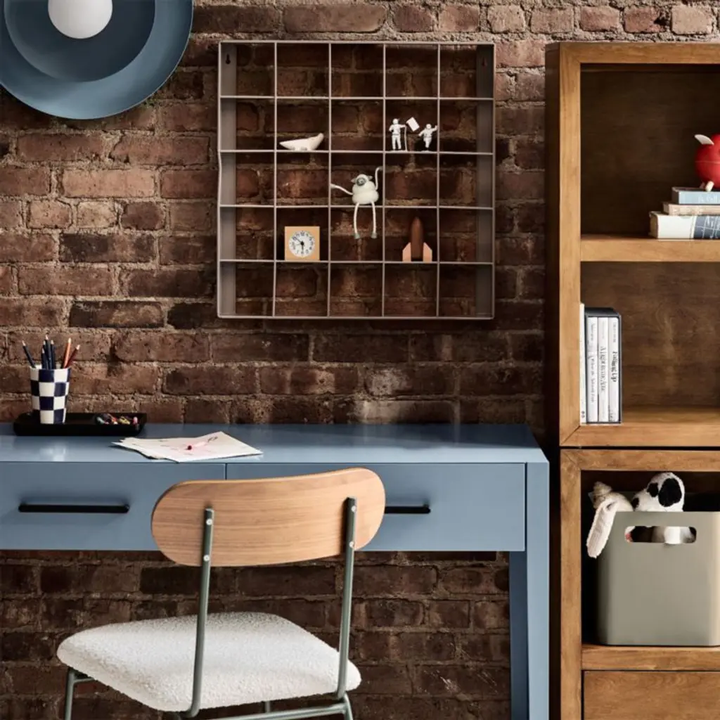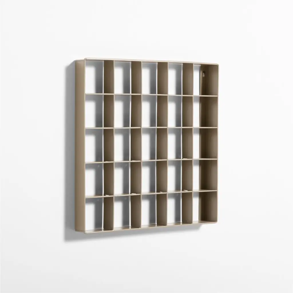 Put their favorite finds on display with this metal wall shelf, made just for little collectors. Crafted of durable iron and finished with a sleek clay brown powdercoat, it features 25 slotsperfect for showcasing toy cars, tiny treasures or well-loved trinkets. It's a space-saving way to turn their collection into wall-worthy art (and keep clutter off the floor).