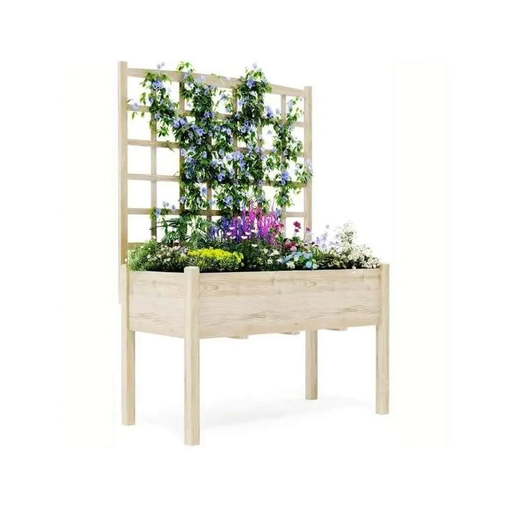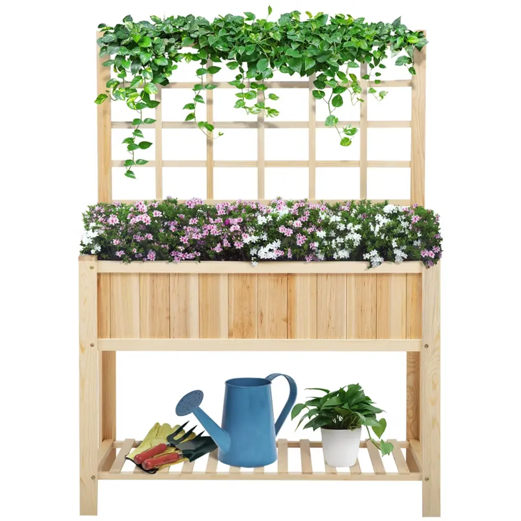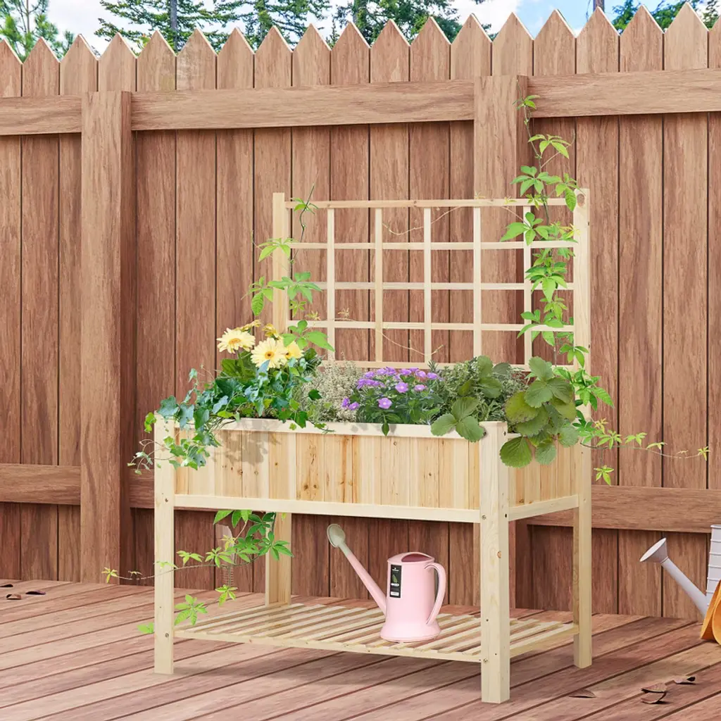 Outsunny 47'' Wooden Raised Garden Bed With Trellis, Coutryside Style Elevated Planter Stand With Open Storage Shelf For Vegetables, Herbs, Flowers