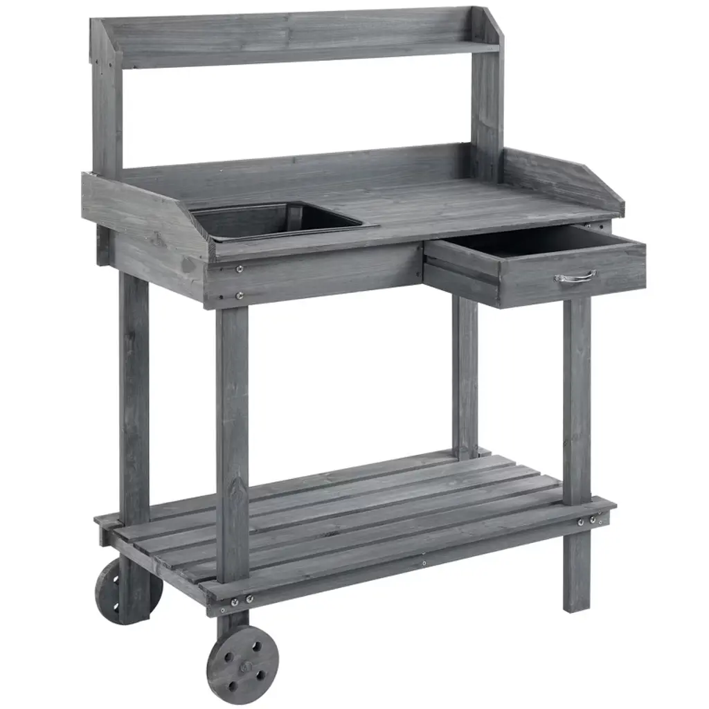 This outdoor potting bench from Outsunny has a simple appearance yet flexible functionality to bring an excellent addition to your garden or backyard. The gardening tables for outdoors has a workstation table, ideal for storing various tools and accessories, and a garden workbench. The steel tabletop of the gardening table is very easy to clean; you could feel free to do the work at it. The planting table from Outsunny gives you a place to get those gardening projects done.