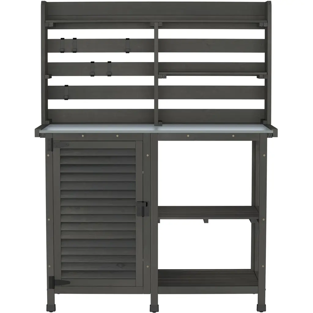 Outsunny Garden Potting Bench Table With Lockable Storage Cabinet And Open Shelf, Outdoor Planting Workstation With Steel Tabletop, Gray