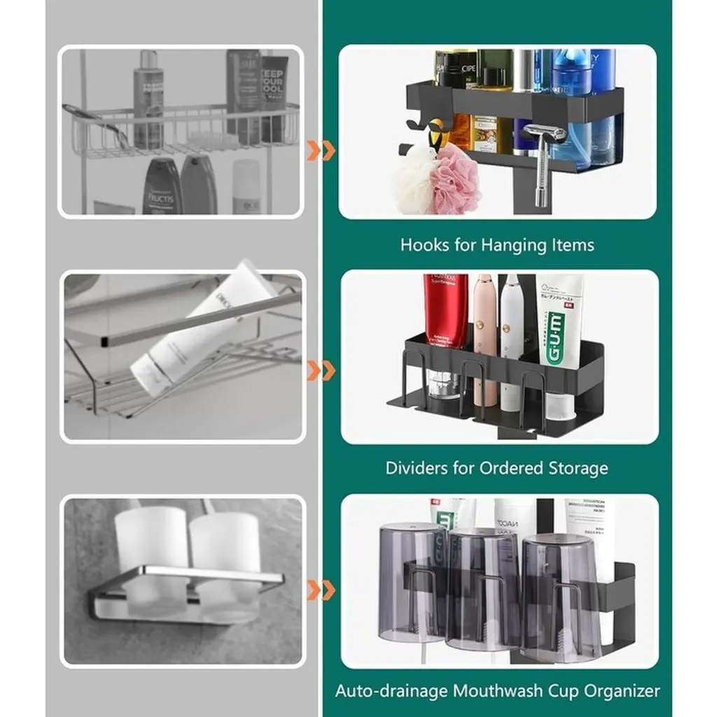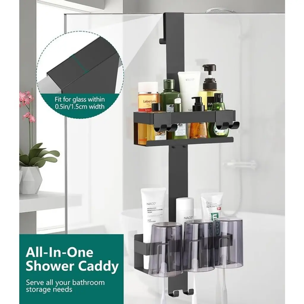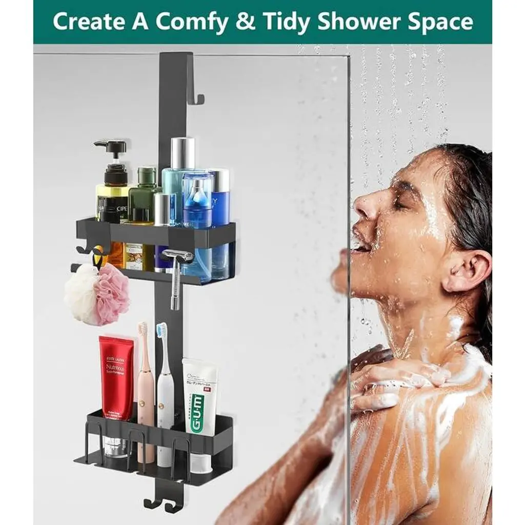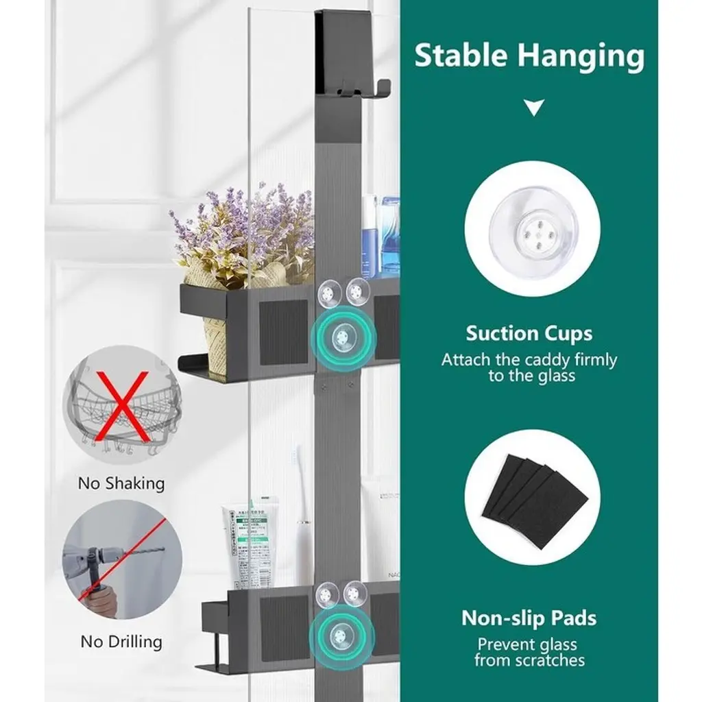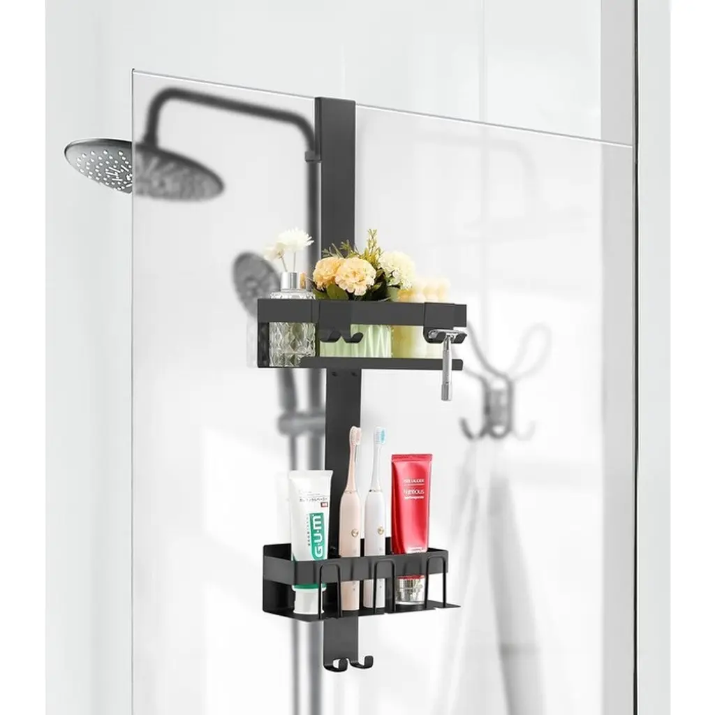 Over Door Shower Shelf 2 Tiers, Stainless Steel Hanging Shower Shelf, No Drilling Required - Black/style: