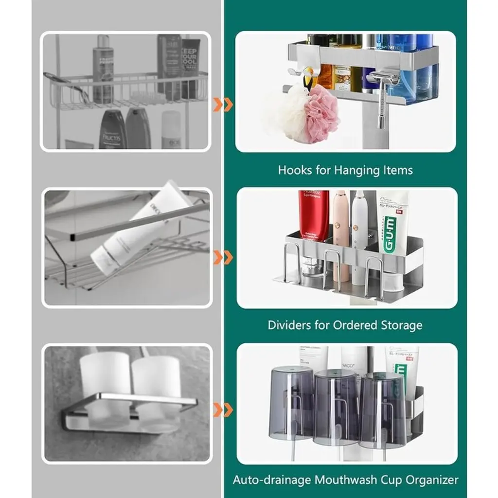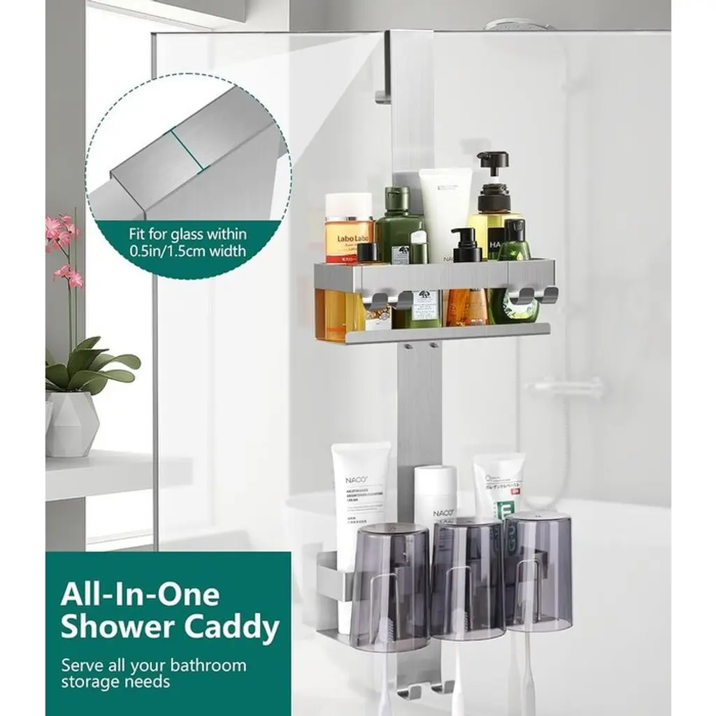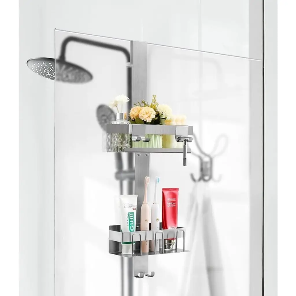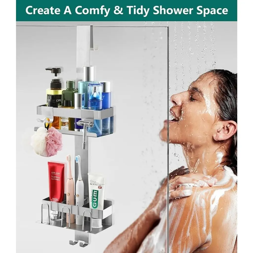 Over Door Shower Shelf 2 Tiers, Stainless Steel Hanging Shower Shelf, No Drilling Required - Style: /Silver