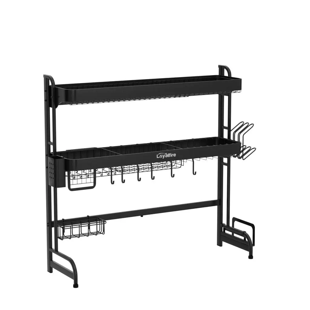 Over Sink Dish Drying Rack, 3 Tier Adjustable (20.87''-37.6'') Ss Expandable Drainer Shelf Rack W/multifunctional Organizers - Black - 10.95"d X 37.6"w X 33.35"h