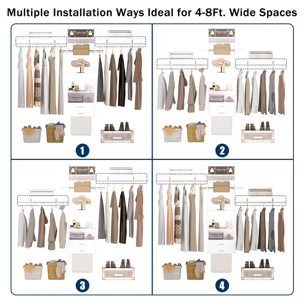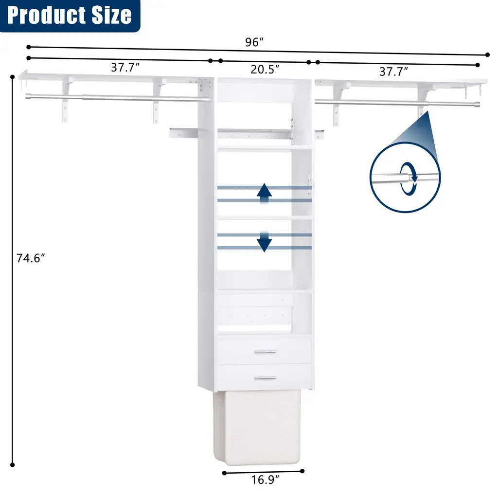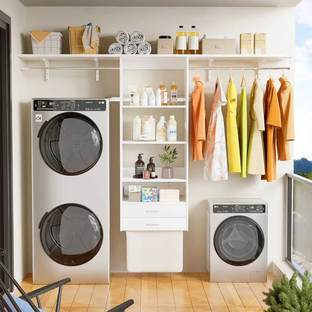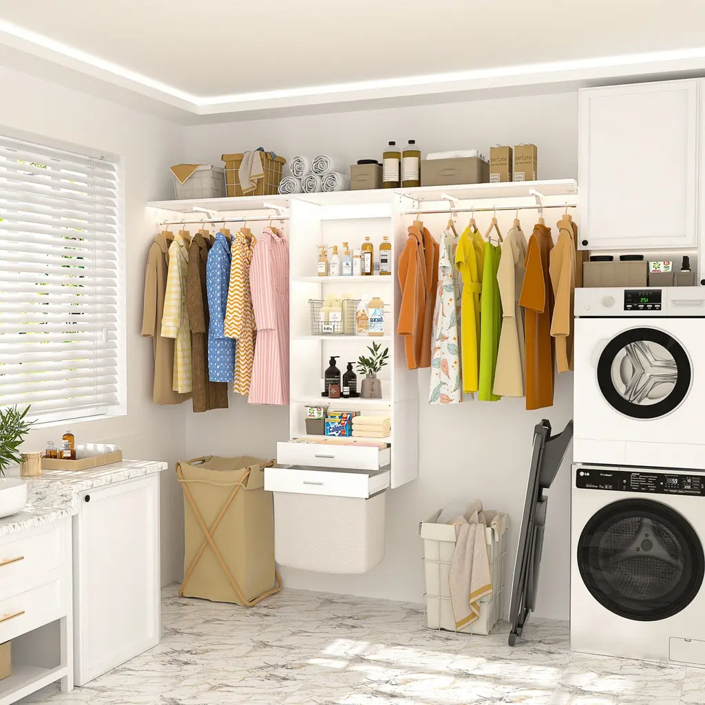 Over Washer And Dryer Storage Shelf For Laundry Room, 8Ft Wall-Mounted Closet Organizer System - White