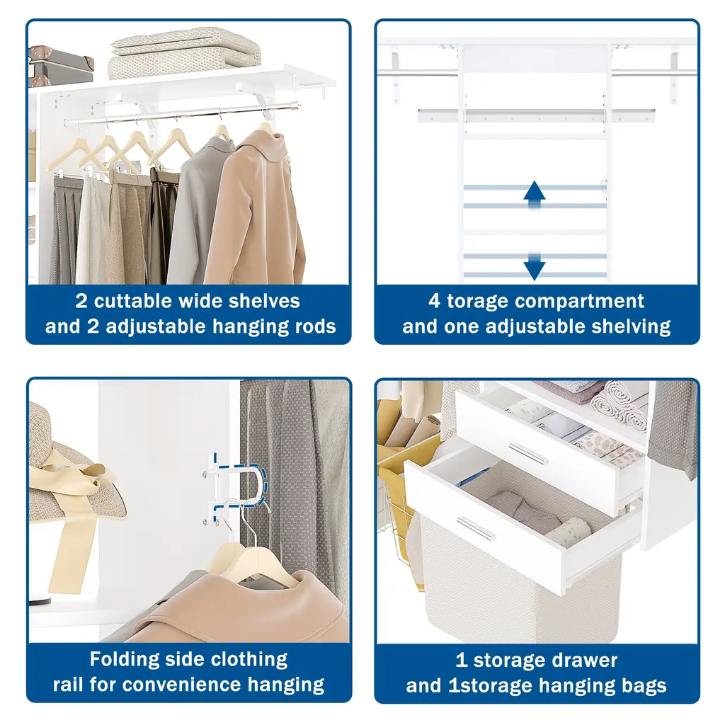 Don't let clutter take over your laundry room, bedroom, or closet. Upgrade to our wall-mounted laundry room organizer/closet system and experience the benefits of efficient storage and organization. With its versatile design and numerous features, this system is the perfect solution for anyone seeking to maximize space and maintain a tidy living environment.Features:Versatile Applications: