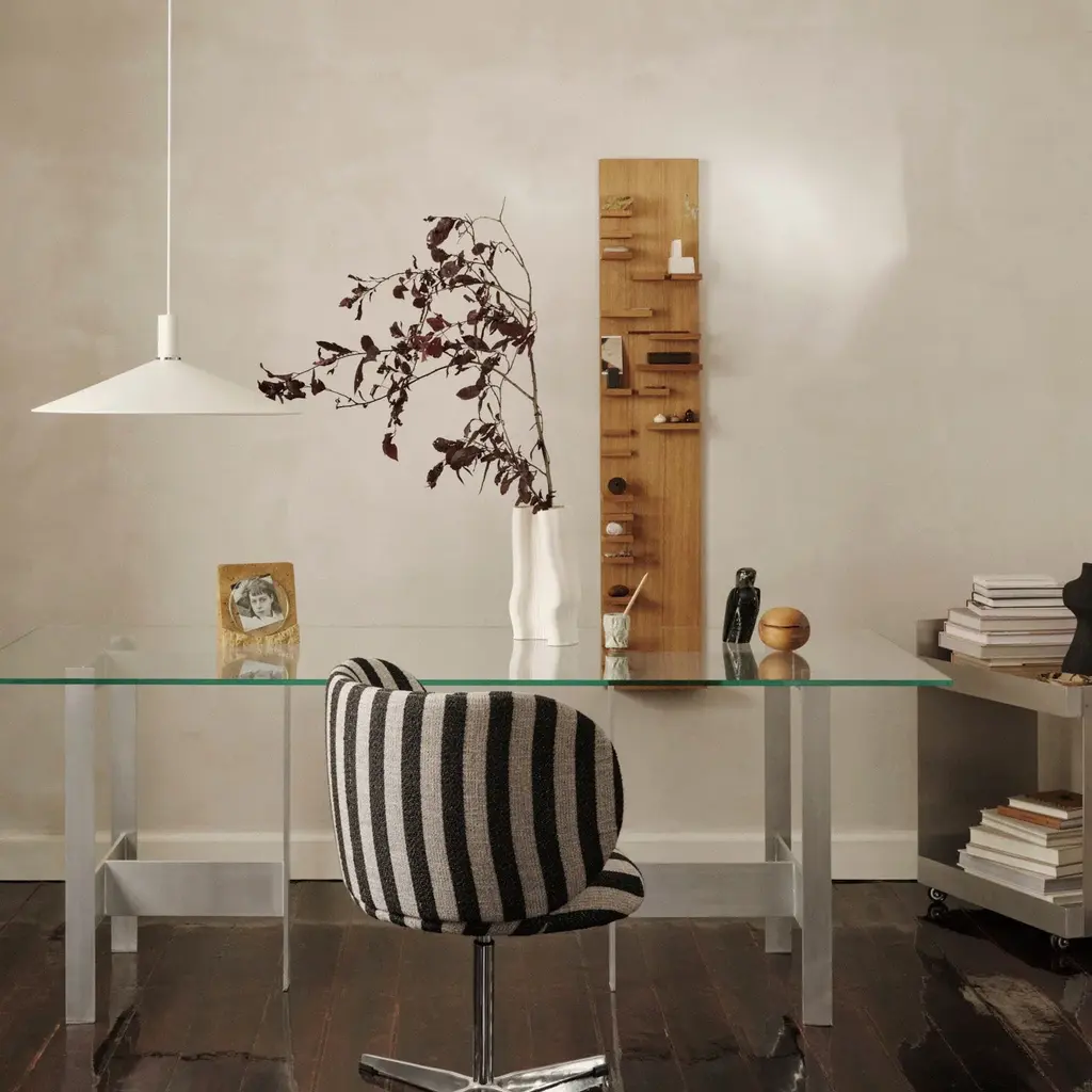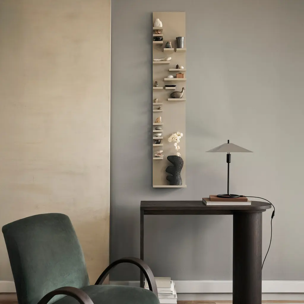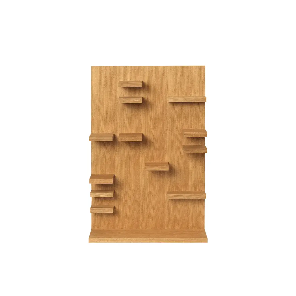 Inspired by traditional Danish 'sættekasser' boxes, the Parade Shelf offers a modern platform to showcase cherished items. It features shelves of varying depths, providing an engaging display for your favorite pieces. Crafted from FSC™-certified MDF, the shelf is available in cashmere and oiled oak finishes, allowing it to seamlessly integrate into diverse interior styles.