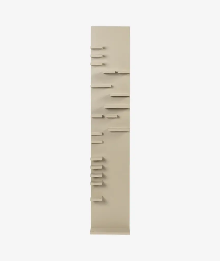 The Parade Shelf takes inspiration from the nostalgic Danish furniture concept of 'sættekasser', which are traditional compartment boxes used to display small treasures. In this modern interpretation designed in collaboration with artist Leise Dich Abrahamsen, little shelves of varying depths provide the perfect platform for showcasing favorite souvenirs and heirlooms. Crafted from painted, FSC certified MDF, the Parade Shelf allows you to curate your own playful display of treasured possessions.