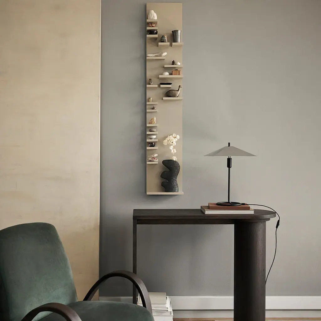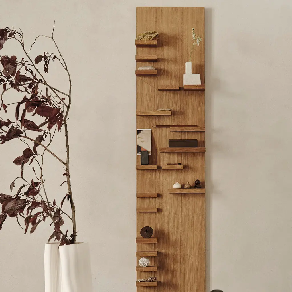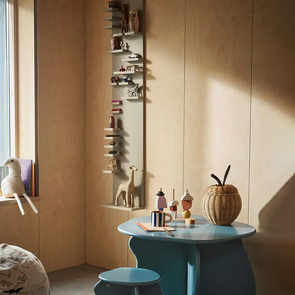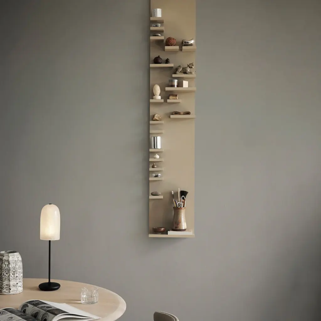 The Parade Shelf takes inspiration from the nostalgic Danish furniture concept of 'sættekasser', which are traditional compartment boxes used to display small treasures. In this modern interpretation designed in collaboration with artist Leise Dich Abrahamsen, little shelves of varying depths provide the perfect platform for showcasing favorite souvenirs and heirlooms. Crafted from painted, FSC certified MDF, the Parade Shelf allows you to curate your own playful display of treasured possessions.