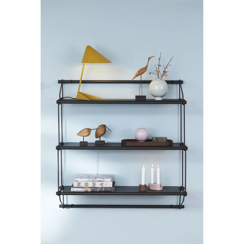 Parade wall shelf by Warm Nordic provides a stylish and capacious setting for instance for books, kitchen jars, or hats, scarves and gloves. Designed by the Norwegian duo Morten & Jonas, Parade was inspired by luggage racks on trains and shelving systems of the 1960s. The shelf has been made of pure steel, which gives it an airy but strong structure with references to industrial design.