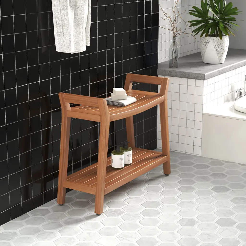 Patented Asia Ascend Teak Shower Bench - Teak Oil - 24" Wide, 21" Tall With Shelf