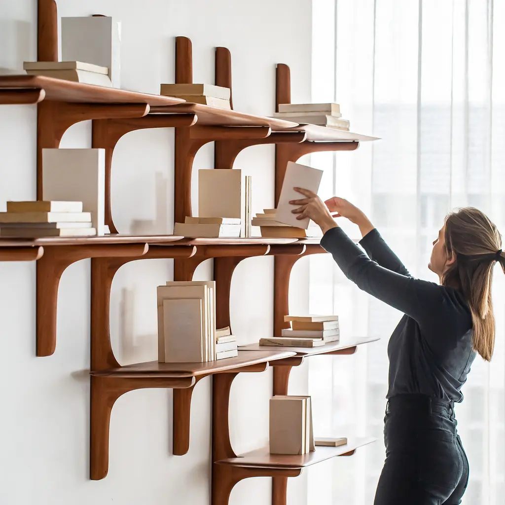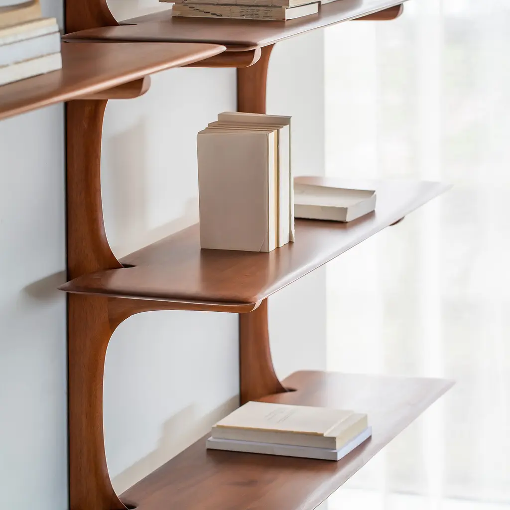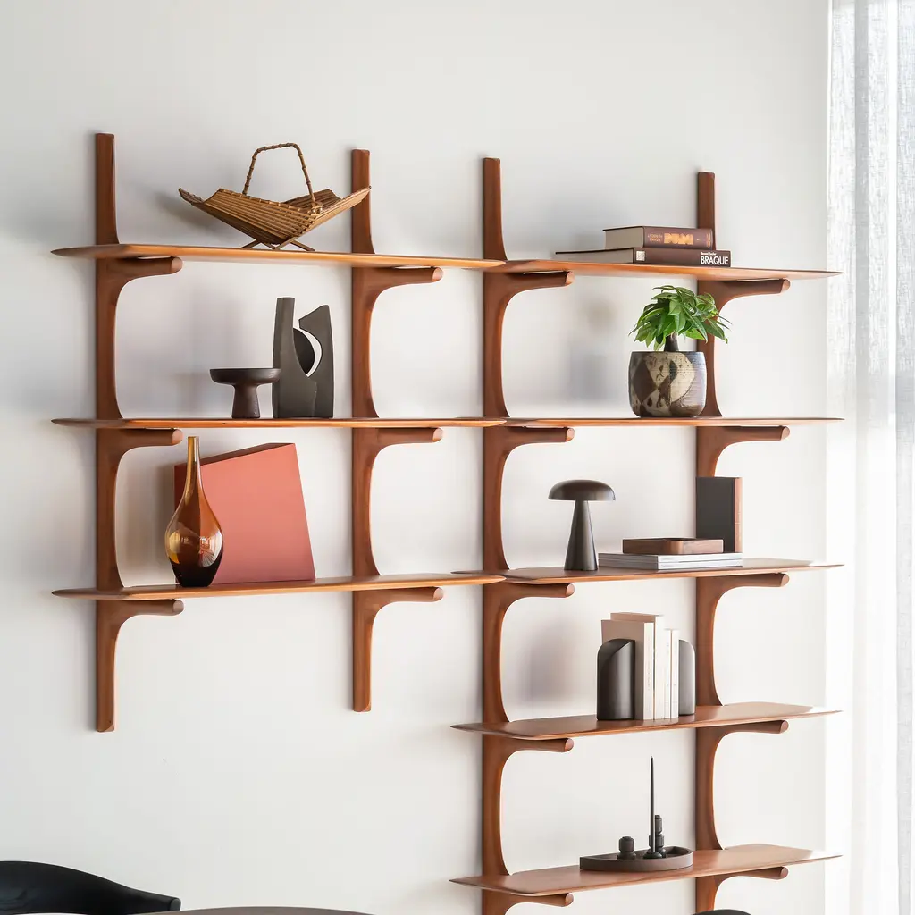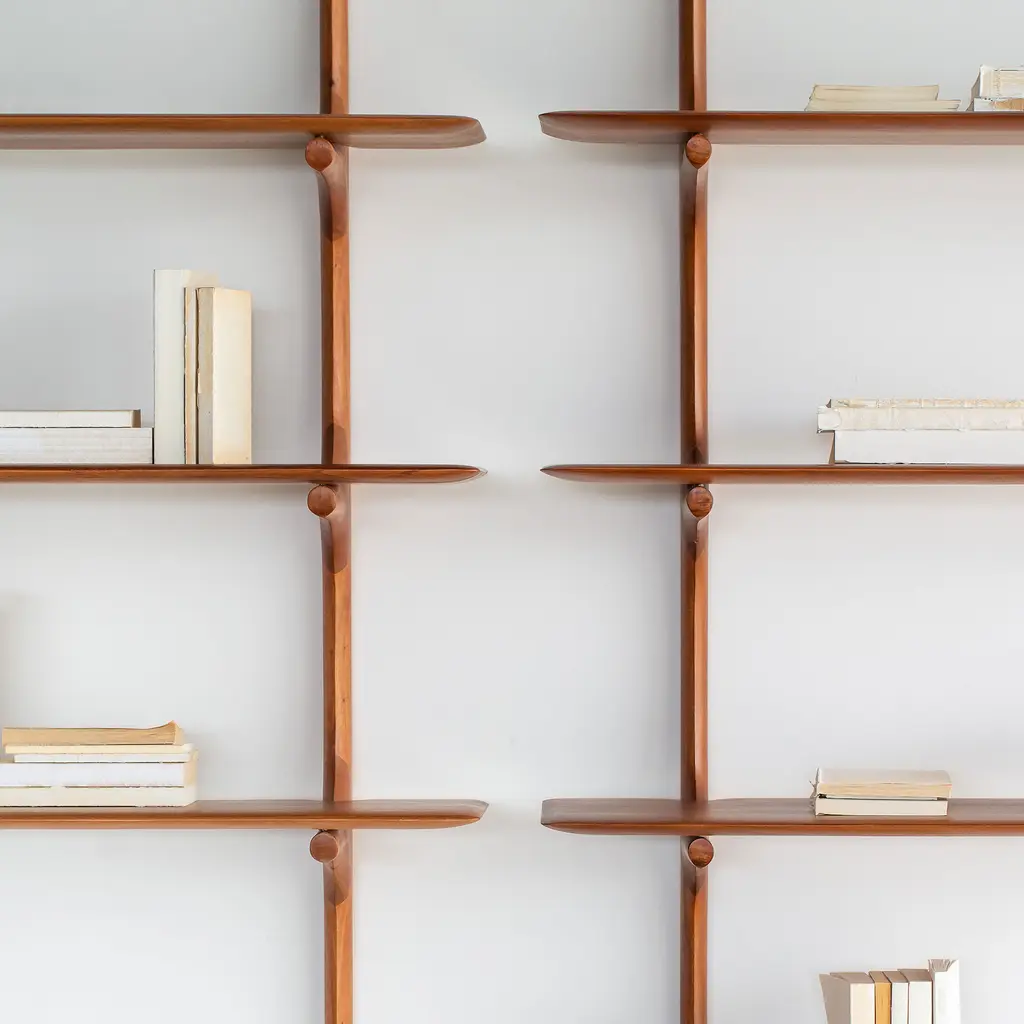 Display treasured family photos, decorative items, books, or plants in style with the Ethnicraft PI Wall Shelf. Inspired by the curves and distinctive textures of tree branches, this shelving system has a refined design with softly rounded edges and subtle wood grain patterns. Crafted from mahogany, the wall shelf is finished by hand to ensure a polished and smooth finish that still lets the gorgeous imperfections of each piece of solid wood shine. The Ethnicraft PI Wall Shelf comes in different sizes and in both light and dark finishes to offer the perfect solution to display, store, and organize a variety of items in your home.
