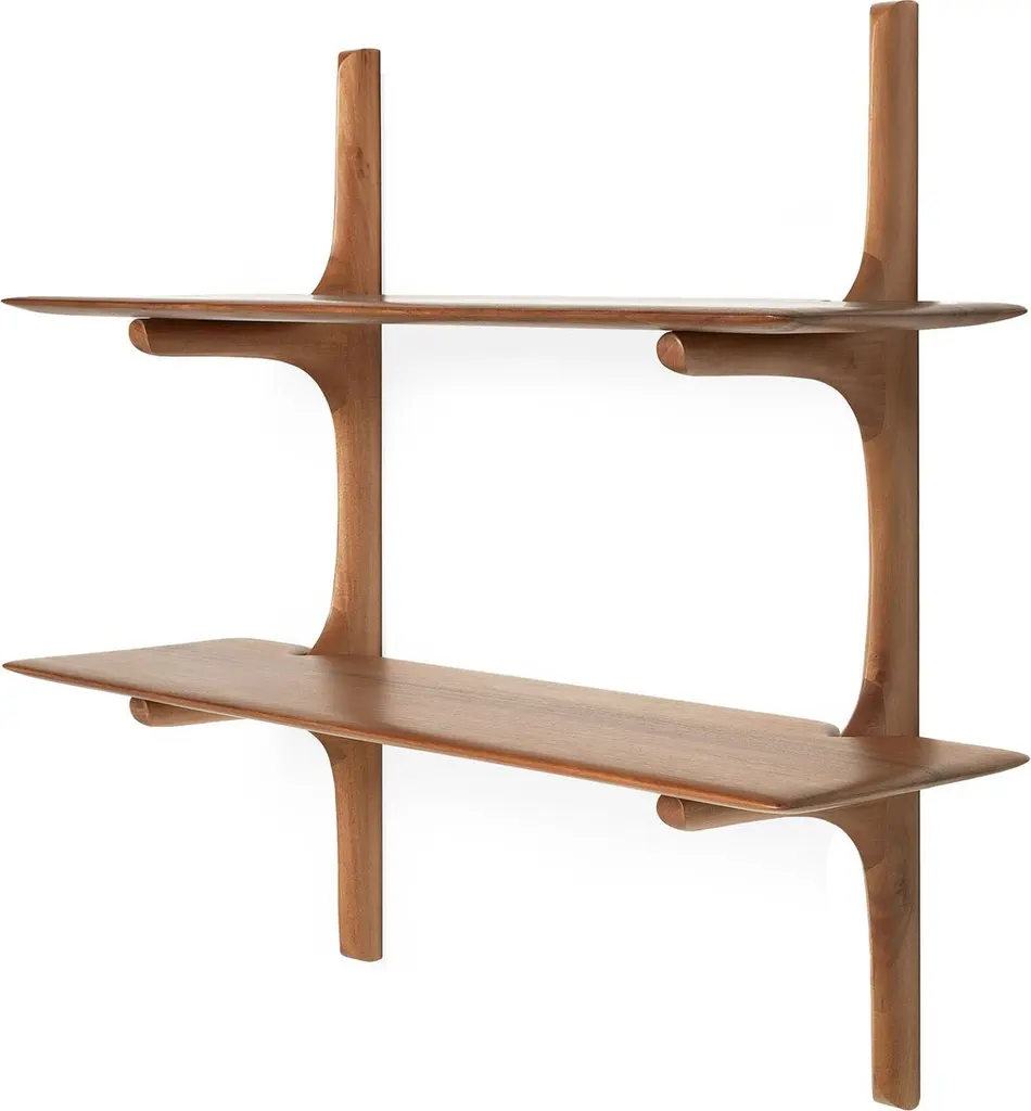 Smooth curves and rounded corners complement the gridlike design of this handcrafted wall shelf. The mahogany is varnished by hand to make the most of its handsome grain.