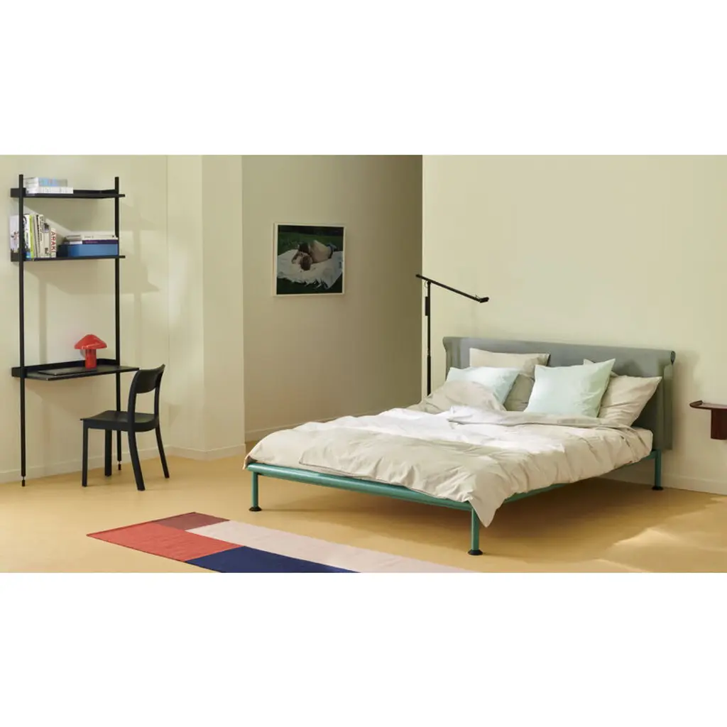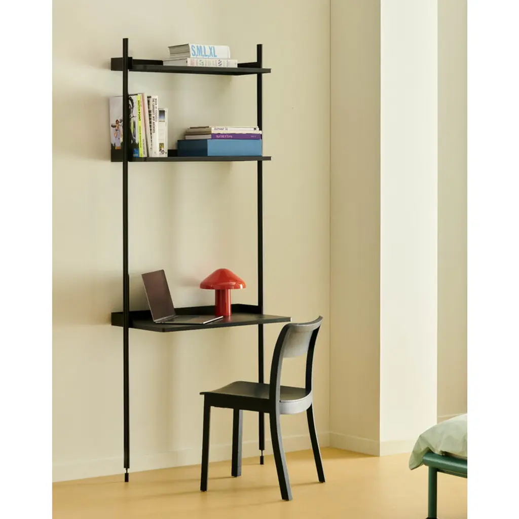 HAY's Pier System, designed by Ronan & Erwan Bouroullec, is a versatile storage solution that adapts seamlessly to the ever-changing needs of modern living. Pier System shelf's simple structure can be easily adjusted to fit any space or requirement – whether you need to expand or downsize your storage, the modular shelf has got you covered! This Pier System 11 office combination consists of two shelves and one work shelf, supported by black plastic brackets. The steel shelves can hold up to 33.07 lbs (15 kg) each and feature a charcoal finish with even a slightly darker back edge, adding a touch of contrast to the sleek, minimalist design. The lightweight yet durable aluminum frame ensures both functionality and timeless style.