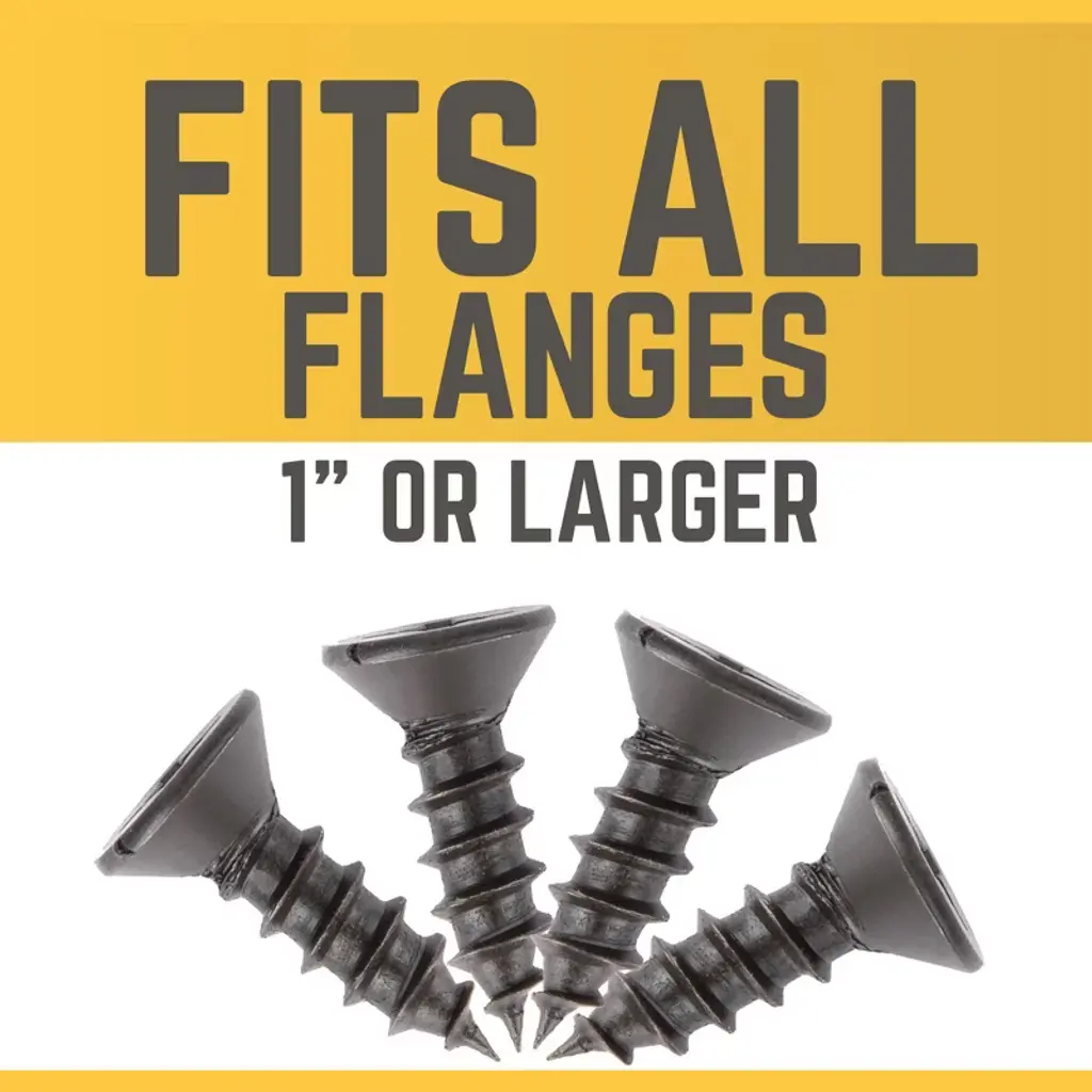 Our convenient 4-pack of wood screws is designed to secure larger flanges into wood shelves or tabletops. Each mounting screw is 0.75 in. long, with a 0.45 in. head. This 4-pack of #14 x 0.75” alloy screws fits all flanges between 1” and 2”, can be used to secure flanges to wood surfaces, and is not intended for mounting flanges on walls or drywall. WARNING: Cancer and Reproductive Harm - www.P65Warnings.ca.gov
