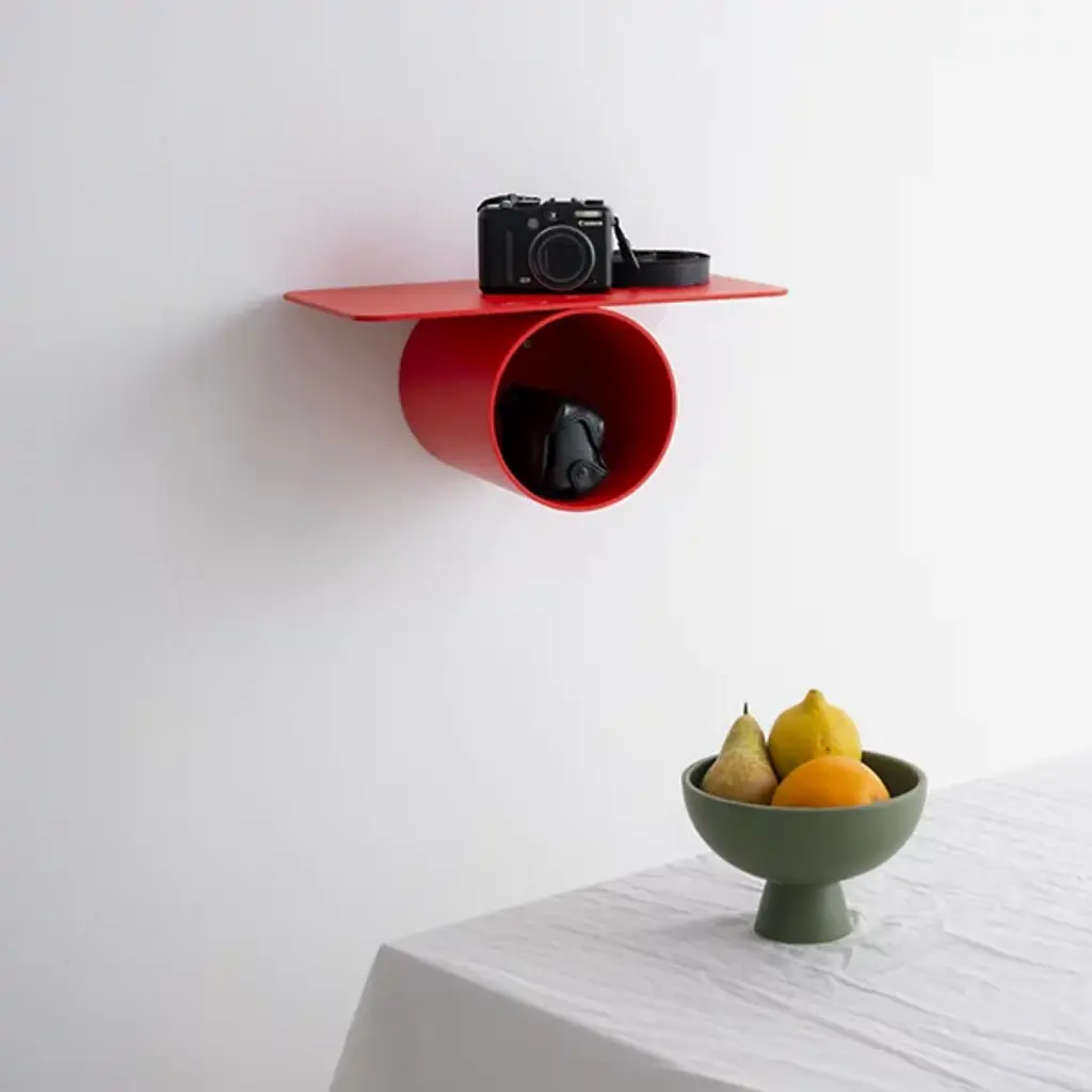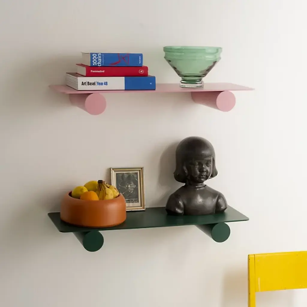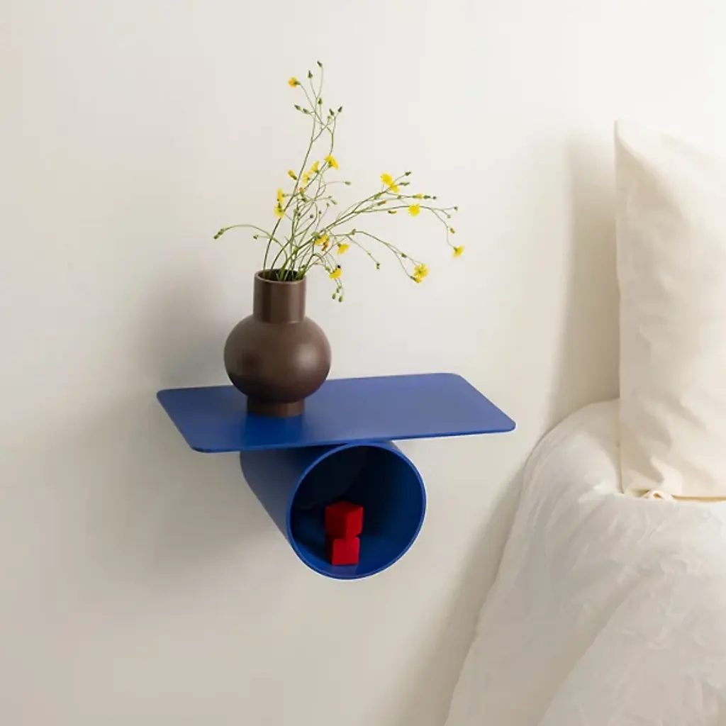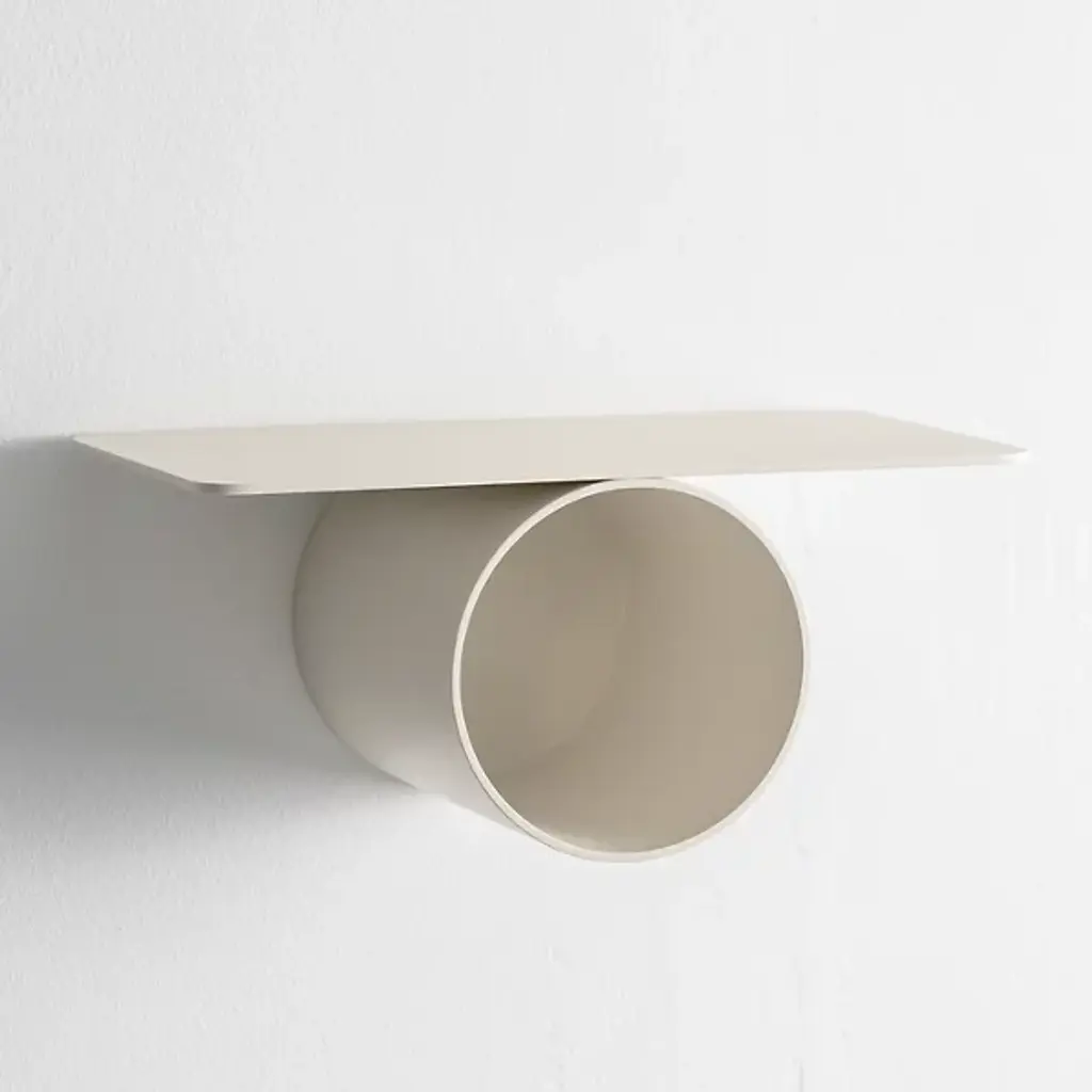Helpful, straightforward, and striking, the Pipeline Shelf from Raawii is a Contemporary design that easily adds storage to wall spaces. A Nicholai Wiig-Hansen design made from recycled aluminum, it uses a horizontal cylinder offering small item storage inside to support a single shelf above. The rich colors and simple geometric shapes keep the focus on its function while creating a balanced visual presentation.