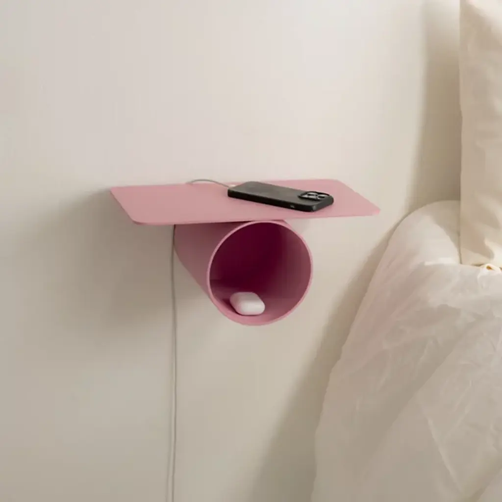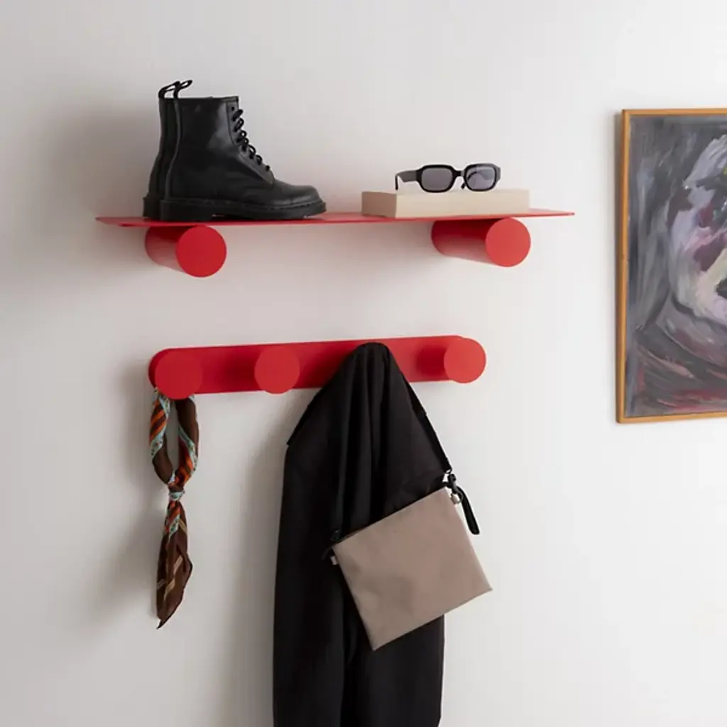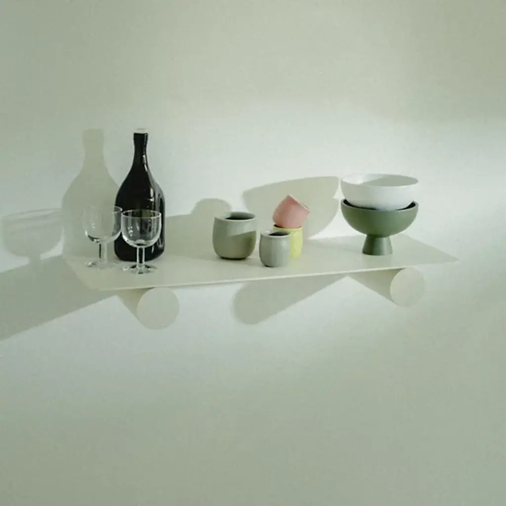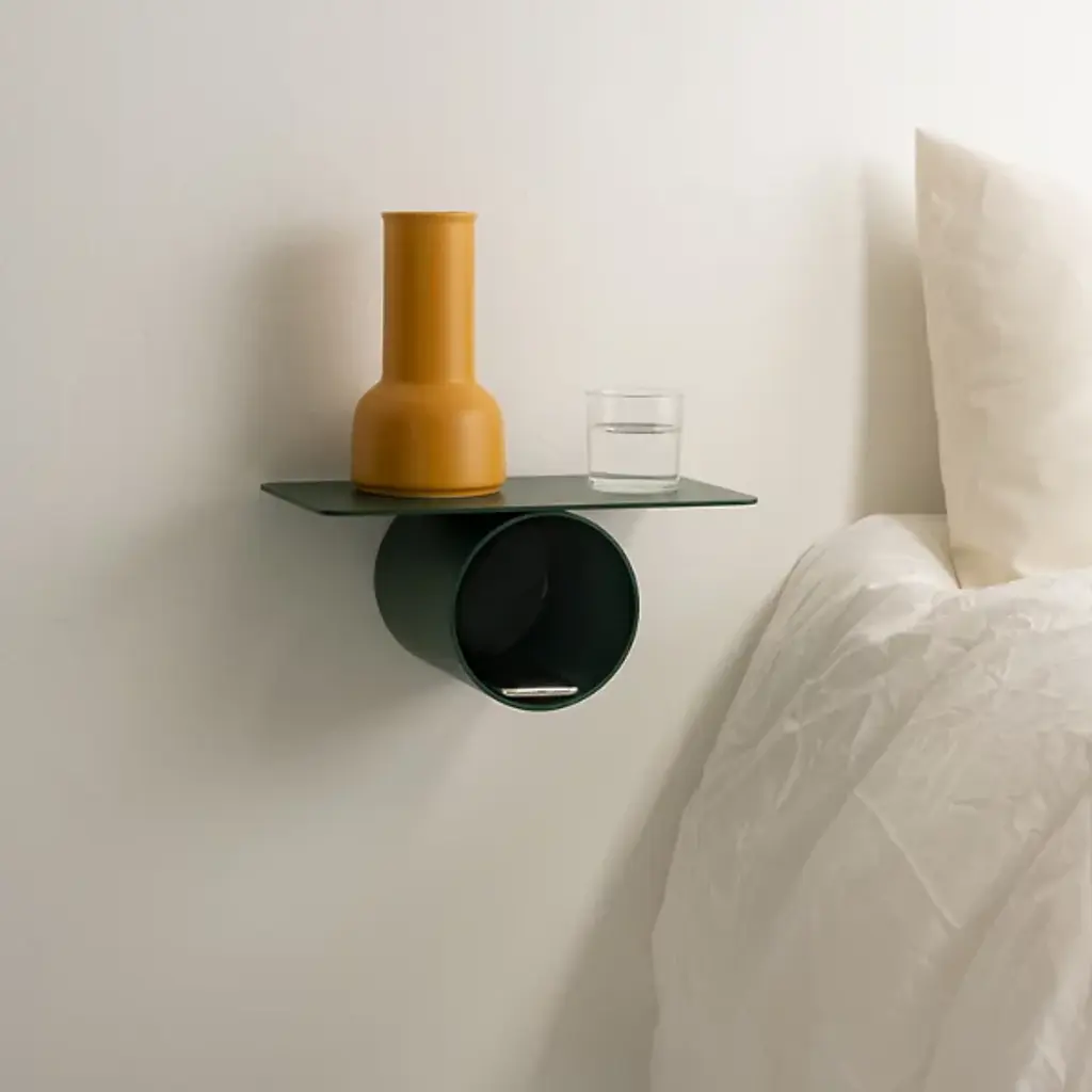 Helpful, straightforward, and striking, the Pipeline Shelf from Raawii is a Contemporary design that easily adds storage to wall spaces. A Nicholai Wiig-Hansen design made from recycled aluminum, it uses a horizontal cylinder offering small item storage inside to support a single shelf above. The rich colors and simple geometric shapes keep the focus on its function while creating a balanced visual presentation.