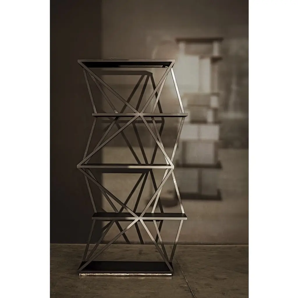 Industrial strength steel framing to create this unique and edgy shelf. The metal is finished simply in matte black to give a sophisticated and contemporary vibe.