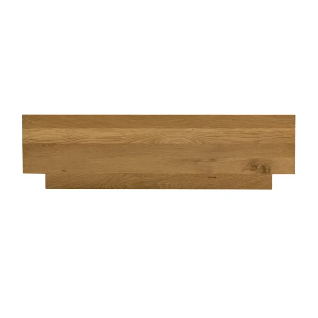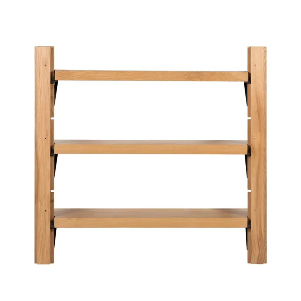 Solid natural oak forms three spacious adjustable shelves, with black iron hardware for clean contrast.