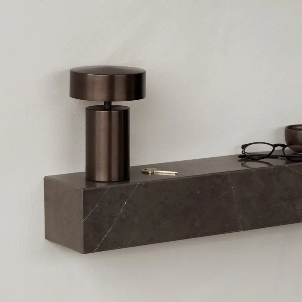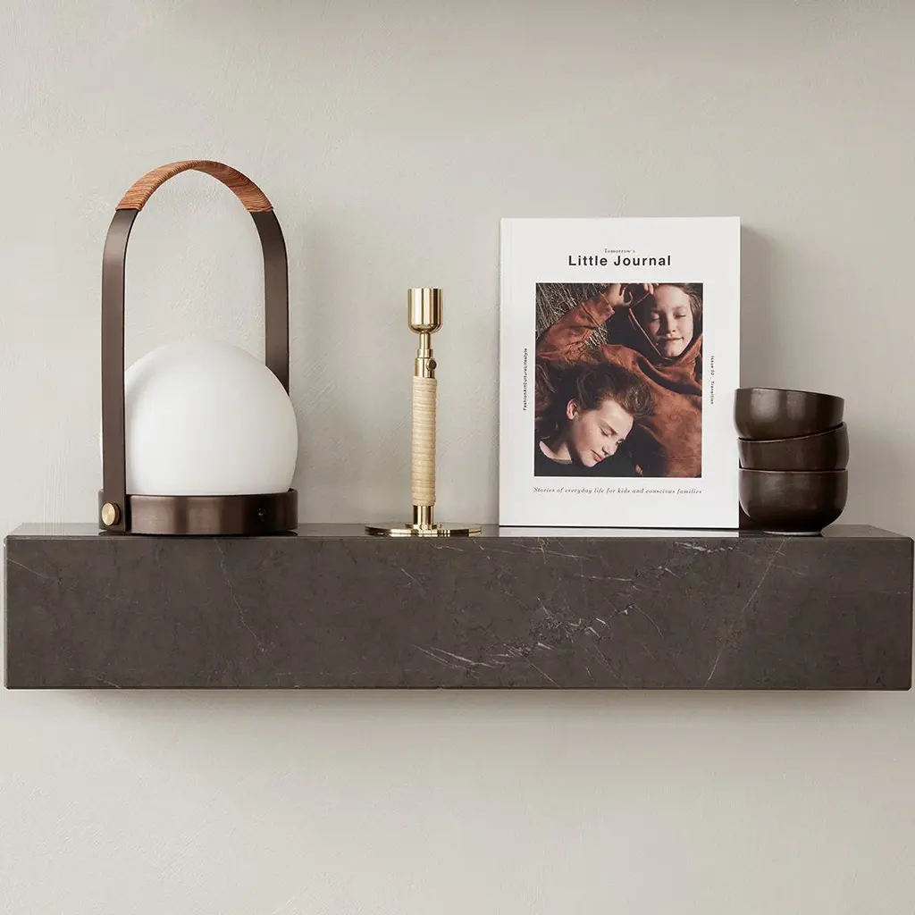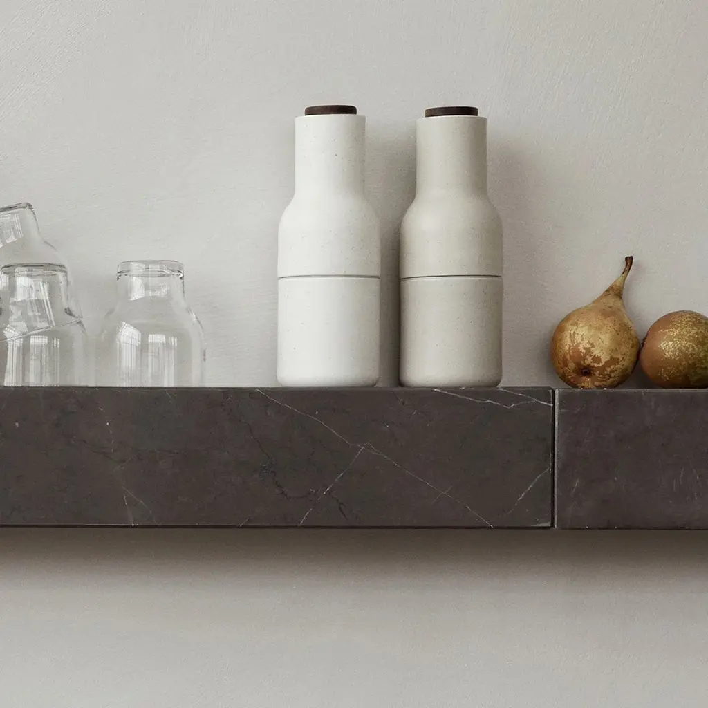 The minimalist profile of the Plinth Shelf is shaped from Grey Kendzo, a rich, brilliant white veined marble, carefully selected for its inherent beauty and light-reflecting qualities. Equal parts elegant and purposeful, the 60 cm long shelf can be attached horizontally to a wall for use as a display ledge or bookshelf, or vertically as a wall-mounted podium on which to showcase a favourite object.