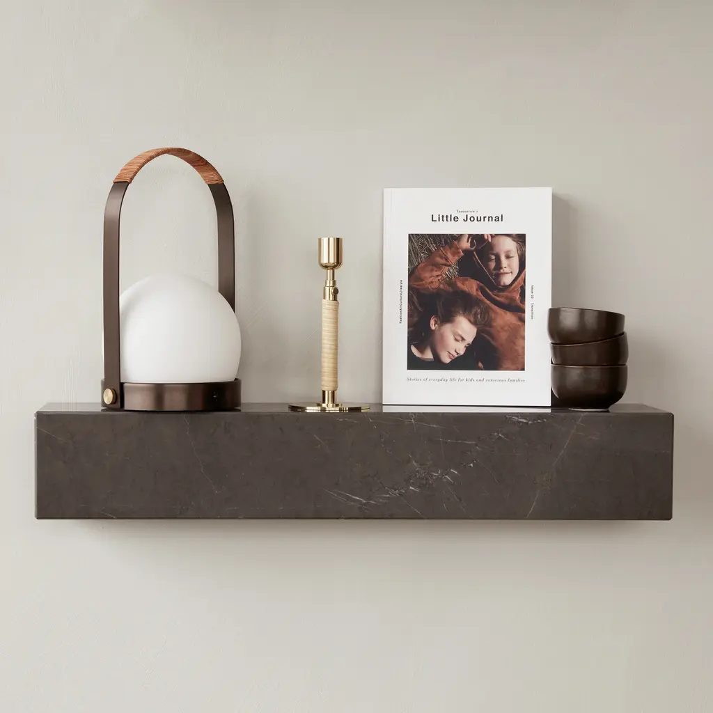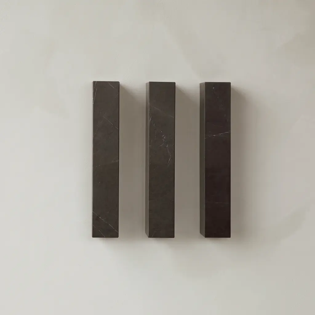 Design group Norm Architects shapes Plinth Shelf from Grey Kendzo, a rich midtone marble with brilliant white veining. Carefully selected for its inherent beauty and light-reflecting qualities, it makes for an elegantly minimal shelf to be attached horizontally to a wall as a display ledge or bookshelf or vertically as a wall-mounted platform on which to showcase a favorite object.