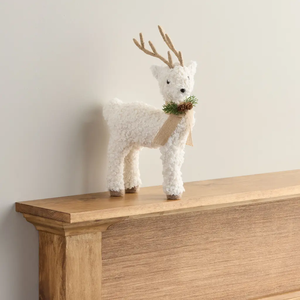 Add a festive and whimsical touch to your holiday décor with this Plush Reindeer Shelf Sitter! Dressed in cozy earmuffs and a cheerful scarf, this soft plush reindeer brings a warm and inviting charm to any Christmas display. Its adorable design and seasonal red, blue, and green tones make it perfect for placing on a mantel, shelf, or tabletop alongside pine trees and holiday figurines.