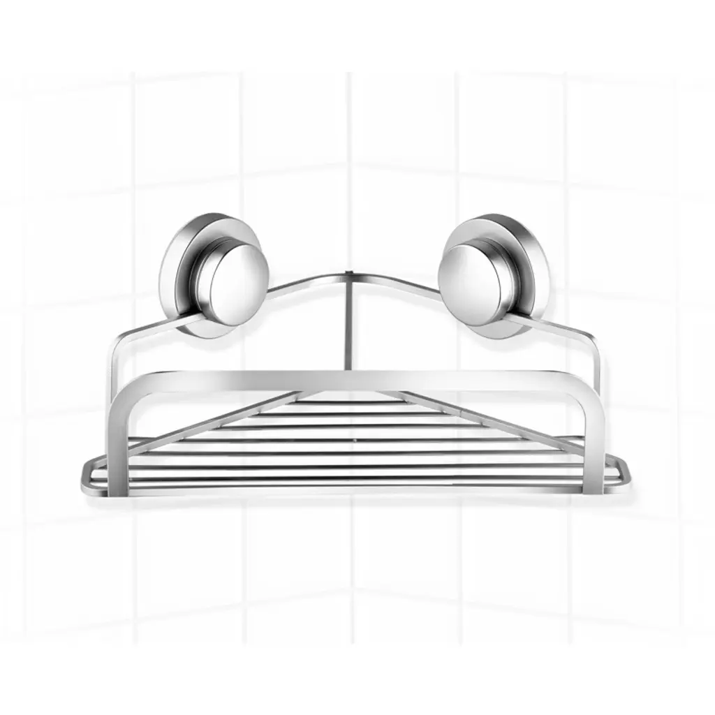 Maximize your bathroom storage with the Chelsea Nickel corner shelf w/ suction. This stylish and practical corner shelf combines the strength of metal with powerful suction cups that firmly adhere to smooth surfaces like tiles and glass, ensuring that it stays securely in place. Dimensions are 10.24” x 6.46” x 2.48”