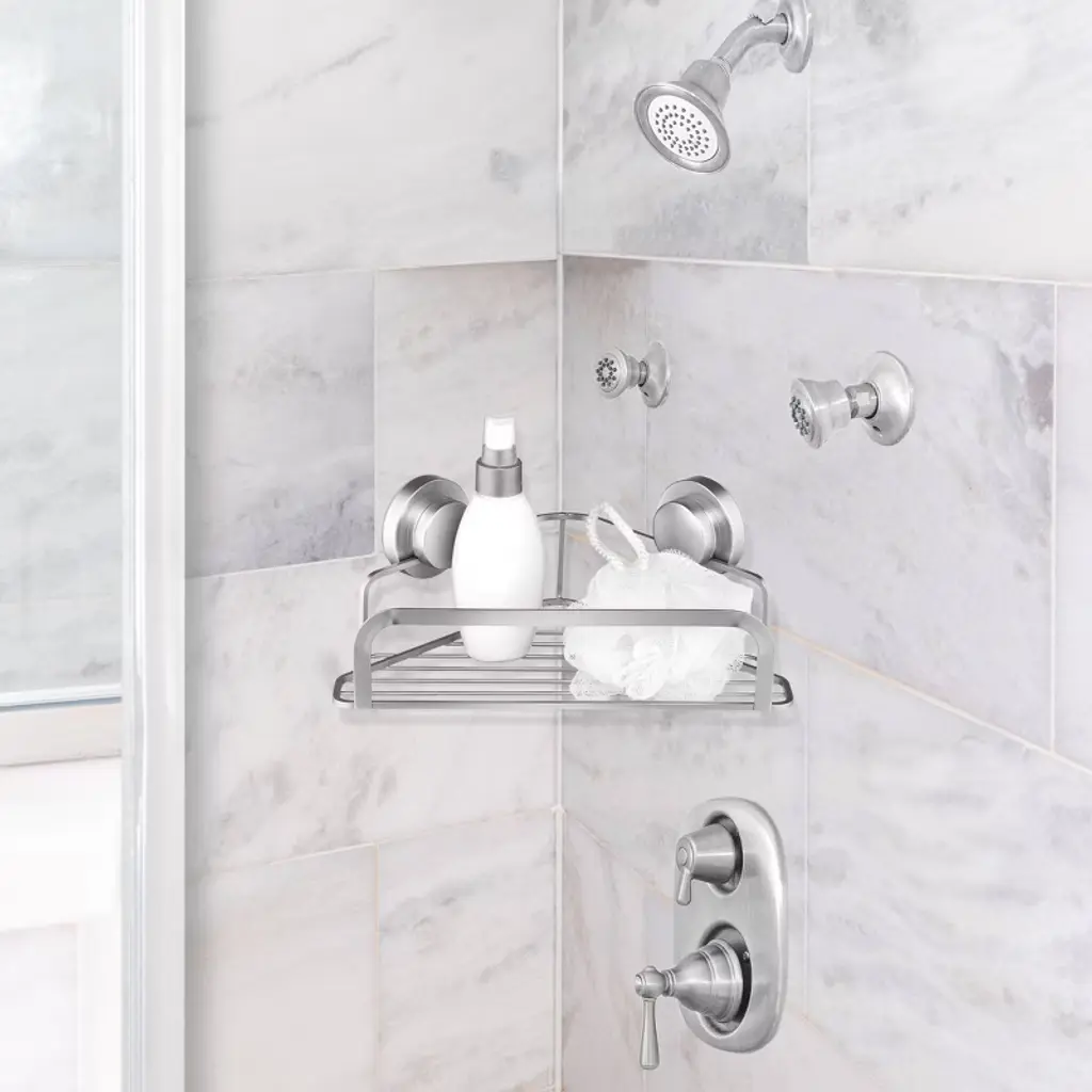 Popular Bath Popular Home Corner Shelf With Suction Metal Nickel Finish