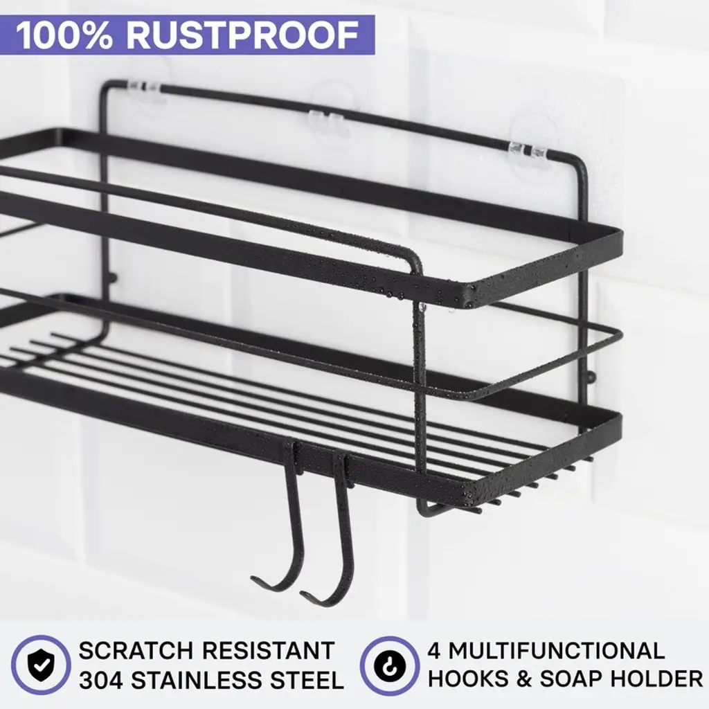 Premium Shower Caddy With Soap Holder, 2-Piece Adhesive Shower Organizer, No-Drill Rustproof Stainless Steel Bathroom Shelf - Matte Black 02 - 2-Pack Caddies + Soap Holder