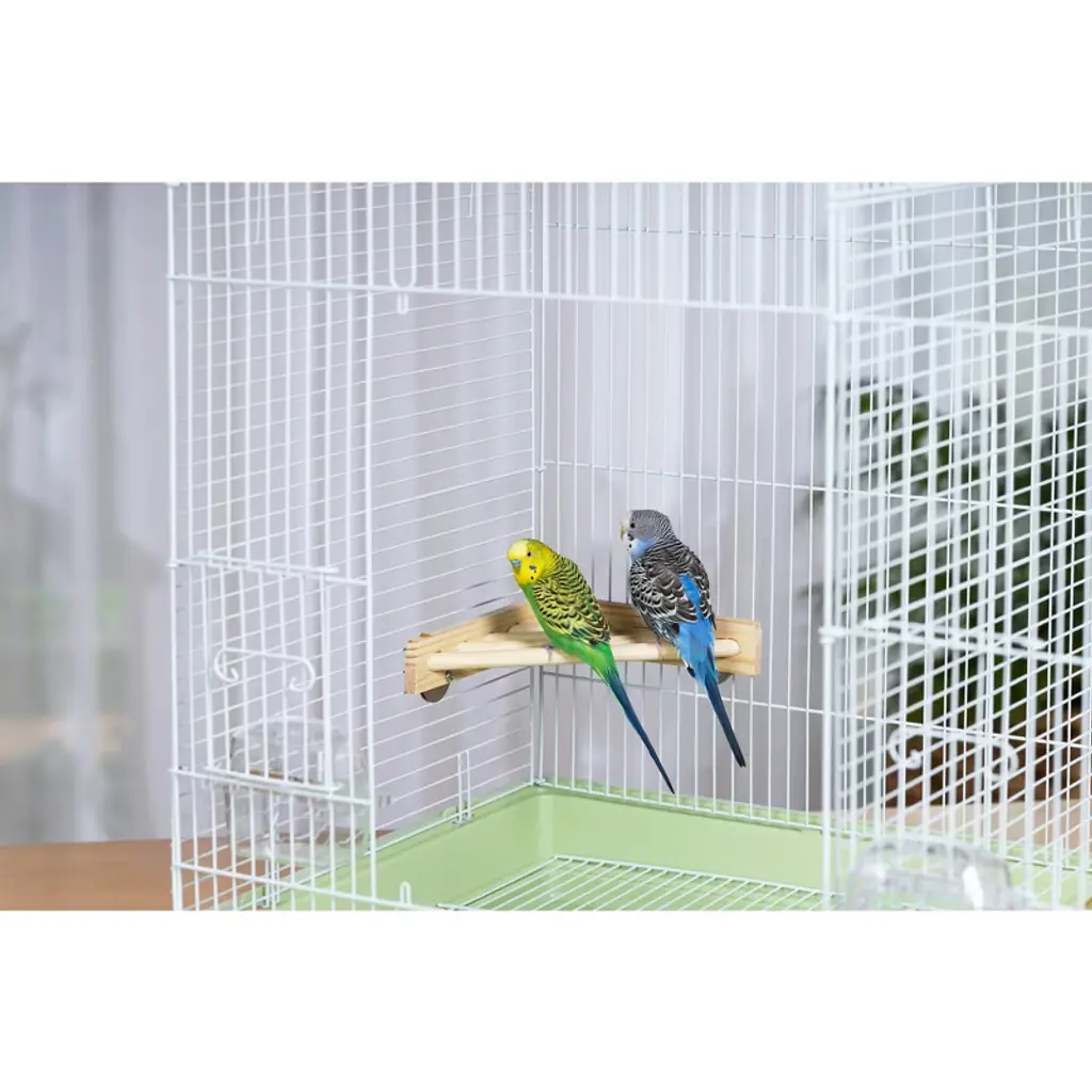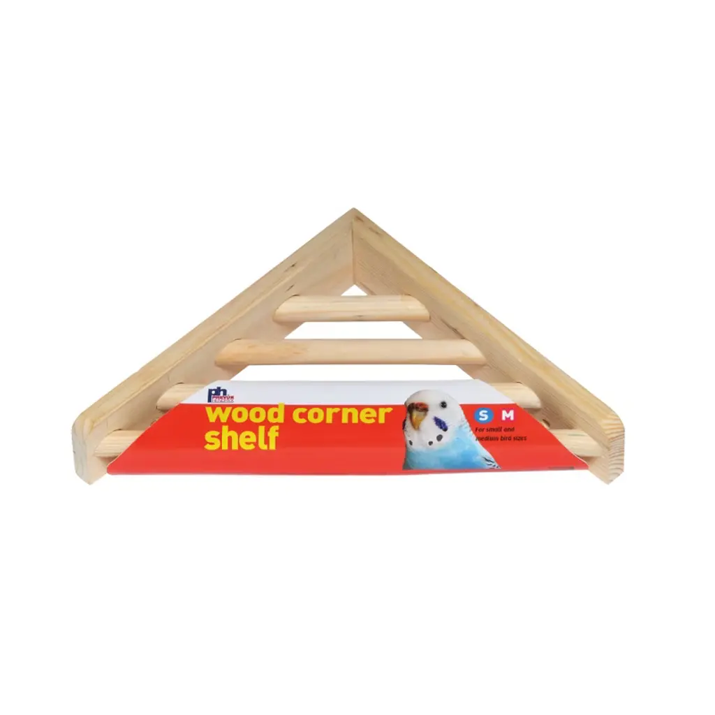 Prevue Pet Products Wood Corner Shelf Platform 3300 gives birds a place to sit, play or sleep. Multiple shelves can be placed throughout a cage to give each bird their own space. Hang toys from the roof above the shelf, or dangle toys from the platform into the space below. Attaches easily to the corner of any cage; hardware included. Each dowel is 1/2" diameter. Measures 7" long by 7" wide and 1 1/2" high.