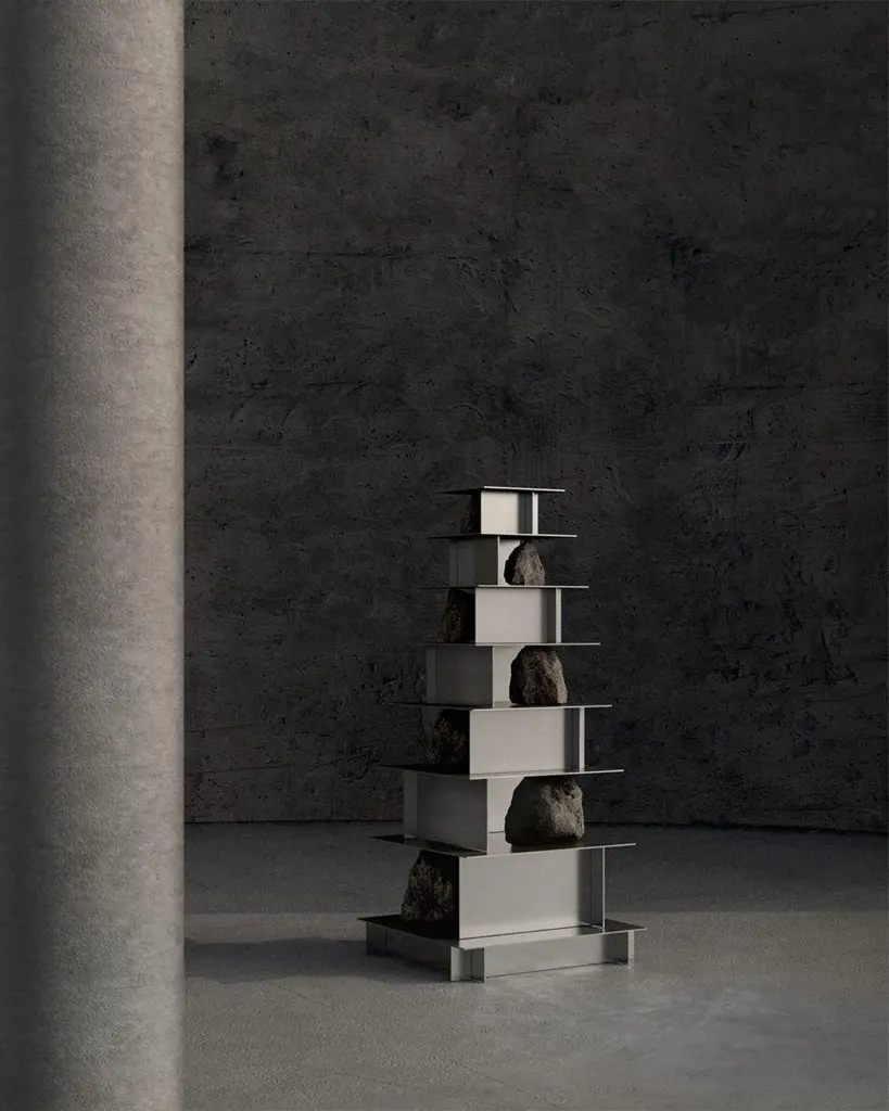 Proportions of stone shelf level 07 by Lee SisanDimensions: W 76 x D 76 x H 160 cmMaterials: stainless steel, natural stoneEach piece is made to order and uses natural stones, so please expect some variability in design.Is constructed by stacking stainless steel plates and stones. Lee Sisan is a designer and artist based in Seoul, South Korea. He majored in interior design to explore the relationship between nature, artifact and humans. He identifies the essence of the material and make form of refined language. He conducts experiments in which man-made beings coexist in harmony with nature and maintain balance.