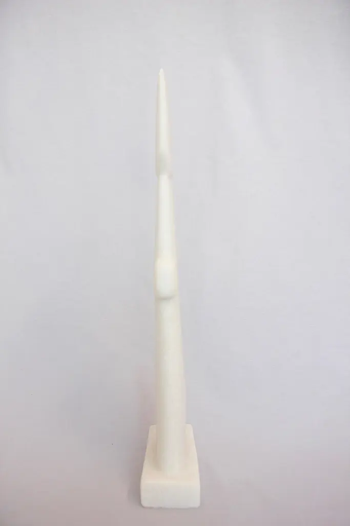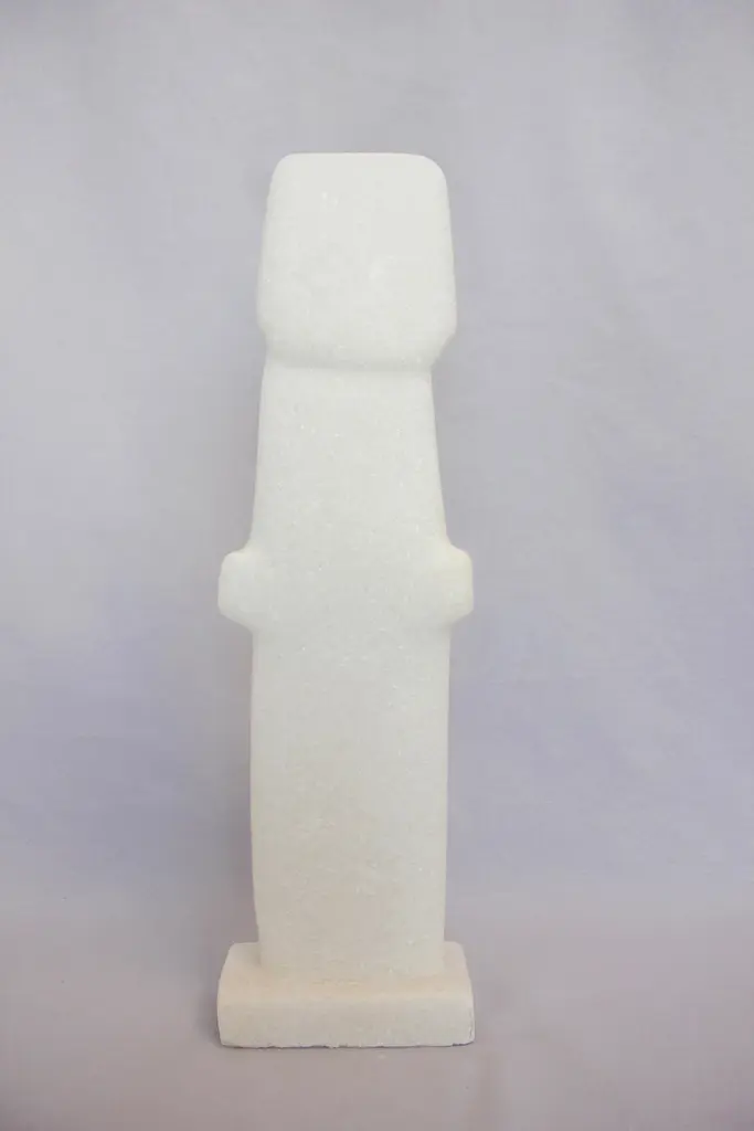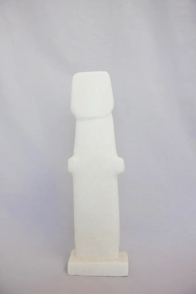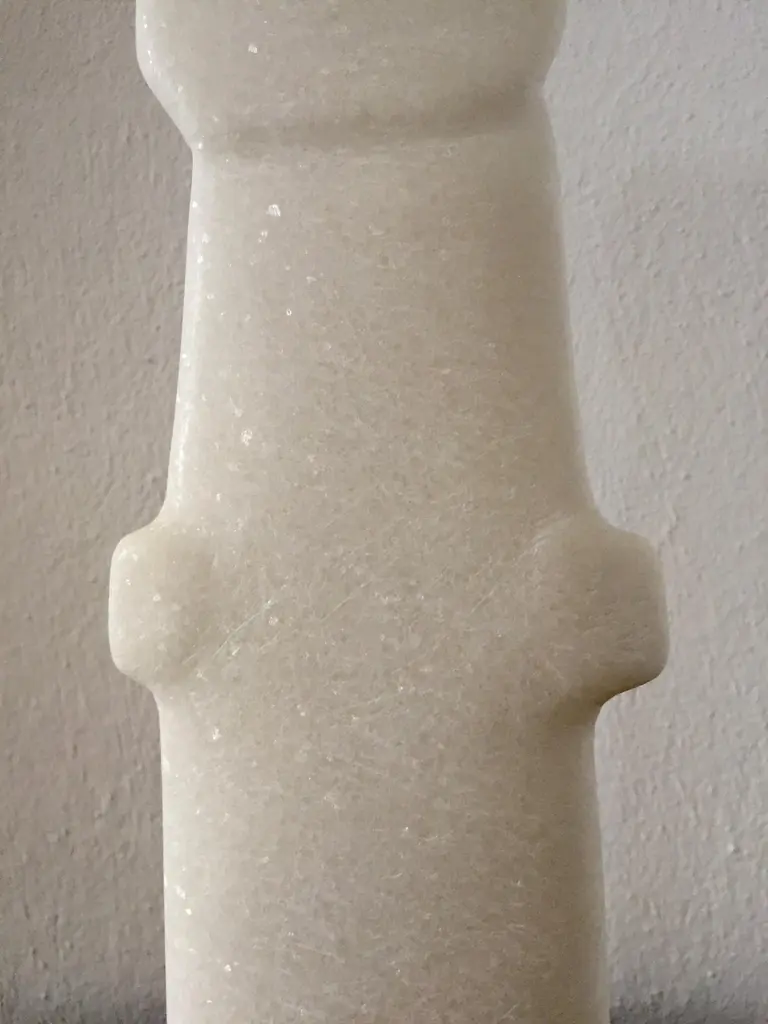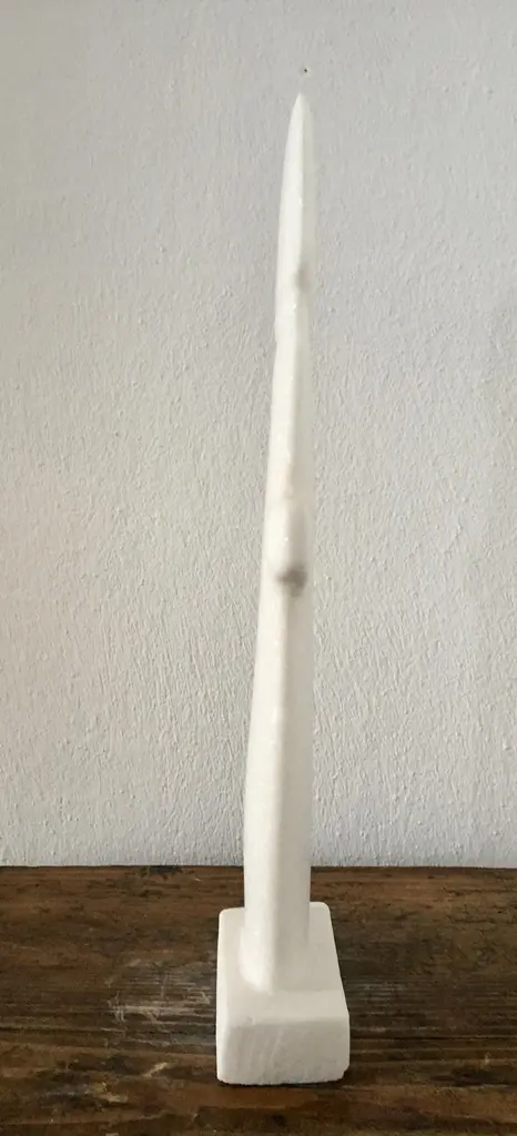 Prota Laos, Naxian marble shelf sculpture, Tom von KaenelDimensions: height 42 cm / deep 5.5 cm / lenght 12.5 cmUnique artwork signed by Tom von KaenelRare Naxian marbleAll the artworks of Tom von Kaenel are unique, handcrafted by himself.The stones all come from the surrounding marble quarries of the island. The Naxian marble is of white, grey or yellow-brown colour, its structure is crystalline. No measuring instruments other than compasses and scales are used in the production of an object. The eye decides on the finalshape. The crystalline surfaces are shimmering. This gives the object a unique liveliness.Tom von Kaenel, sculptor and painter, was born in Switzerland in 1961. Already in his earlychildhood he was deeply devoted to art. His desire to bring beauty to the world is Tom vonKaenel’s inspiration, drive and source for the creation of his works.Already during his training as a technical draughtsman and later as a teacher of pictorial design, he devoted himself to painting and three-dimensional work. Tom von Kaenel has exhibited his work in various solo and group exhibitions. For seven years he was represented by Galerie Ute Barth in Zurich.Today Tom von Kaenel lives and works on the island of Naxos. Everything in his environment inspires and shapes his work. He creates objects and sculptures out of Naxian marble in craftsmanship liveliness and timeless beauty.