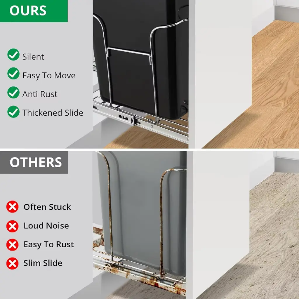 Pull Out Trash Can Under Cabinet, Stainless Steel Slide Out Garbage Can Shelf Under Sink, Adjustable Slide Out Shelf For Waste Can Under Kitchen Sink