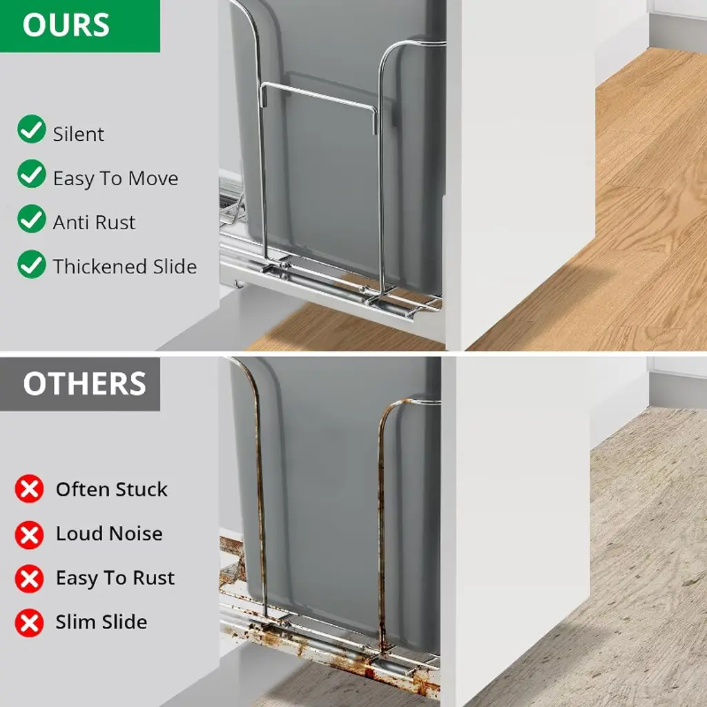 Pull Out Trash Can Under Cabinet, Stainless Steel Slide Out Garbage Can Shelf Under Sink For 30l Trash Can With Resistance Band Trash Can No Included
