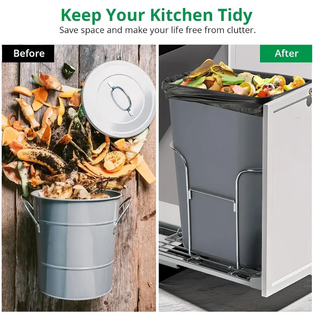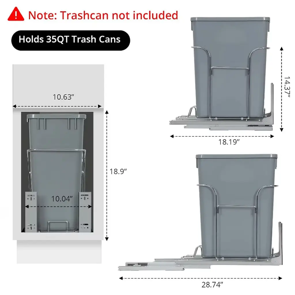 Pull Out Trash Can Under Cabinet, Stainless Steel Slide Out Garbage Can Shelf Under Sink For 35l Trash Can With Resistance Band Trash Can No Included