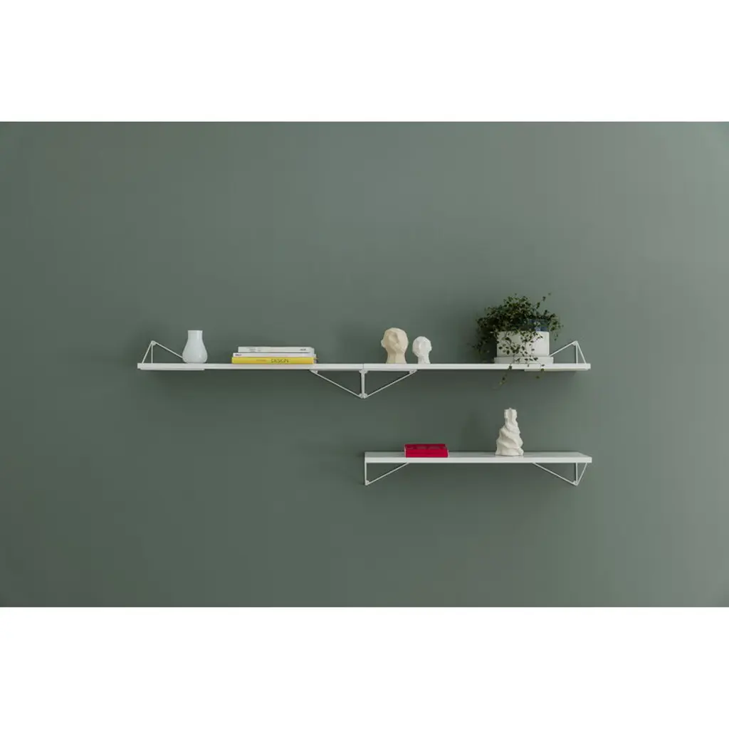 The Pythagoras shelf by the Swedish brand Maze is part of a unique shelving system which combines the preciseness of mathematics with the creative possibilities of design. Designed by Gustav Rosén, the Pythagoras collection was inspired by the Pythagoras' triangle theorem, making a triangle the base and most essential element of the shelving system. Pythagoras wall brackets, shelves, and drawers give you the freedom to create shelves of various sizes, colors and shapes in any space. Use them to build a single wall shelf, bedside table, corner shelf, set of kitchen drawers, or a large shelving module covering an entire wall. The wall brackets can be mounted either below or above the shelf or drawer in four different positions, and their airy design leaves room for blank space as well. Play, experiment, and create the perfect shelf for your own needs! The set includes three shelves, brackets are sold separately.