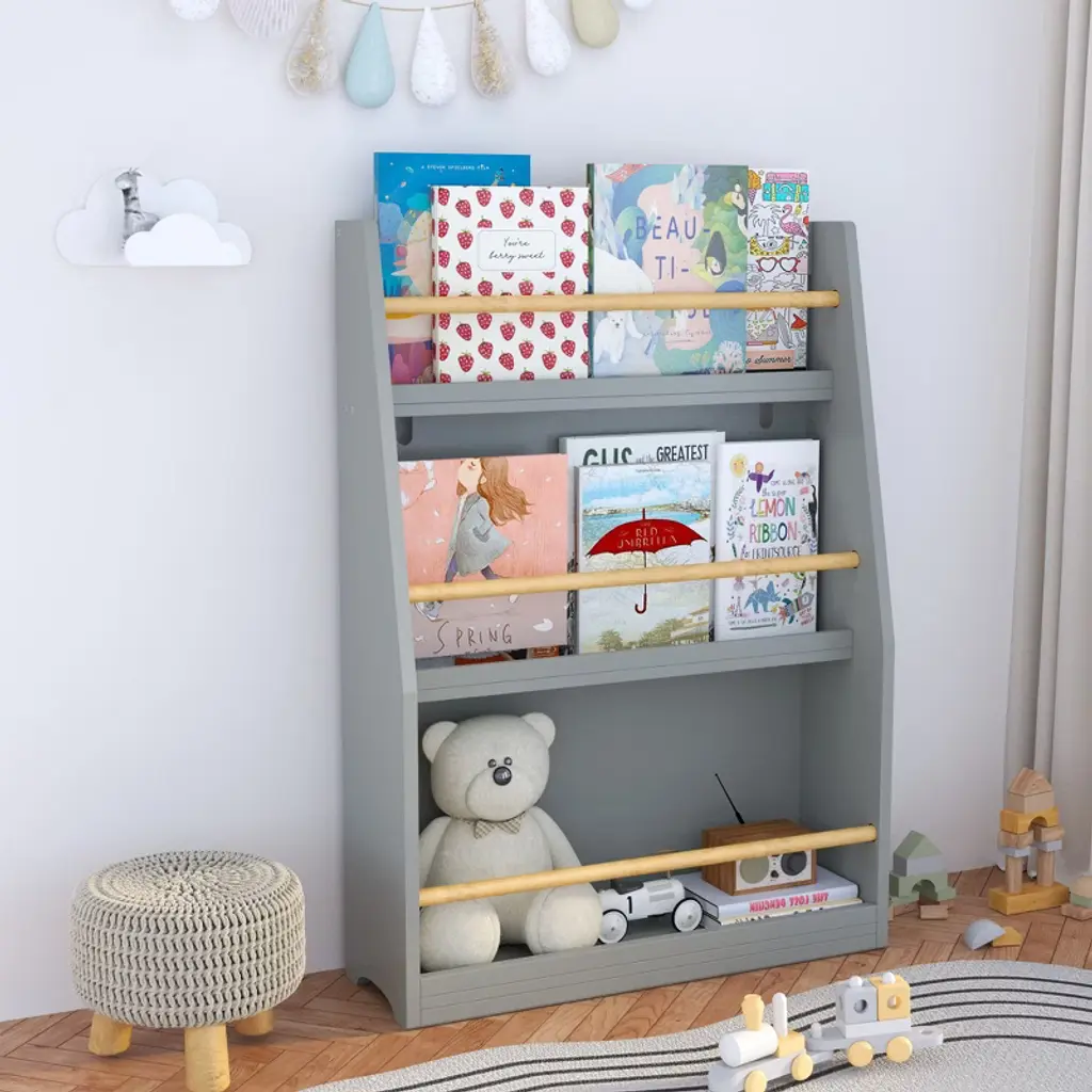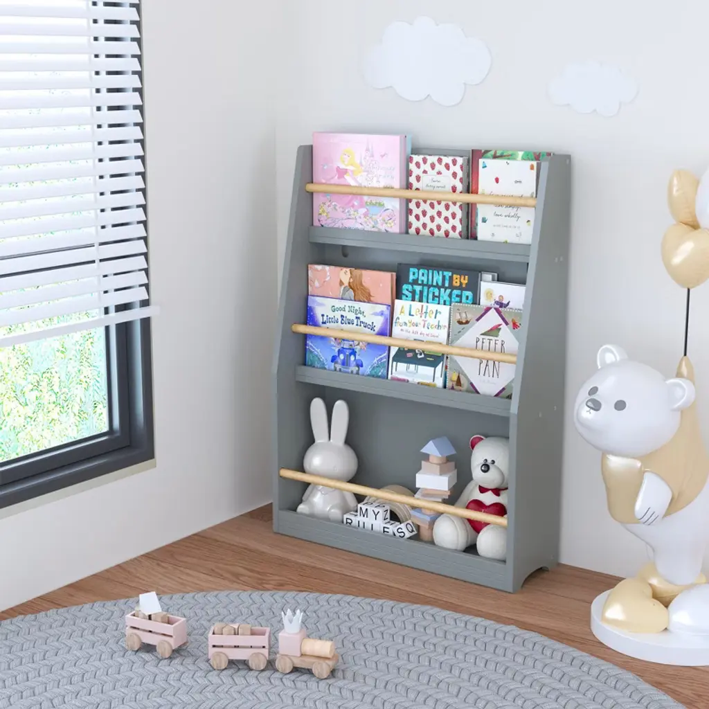 Racxily 3 Tier Kids Book Shelf,kids Book Rack, Helps Keep Bedrooms, Playrooms, And Classrooms Organized, Gray
