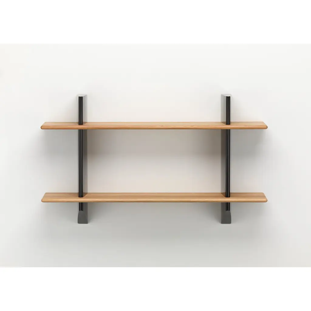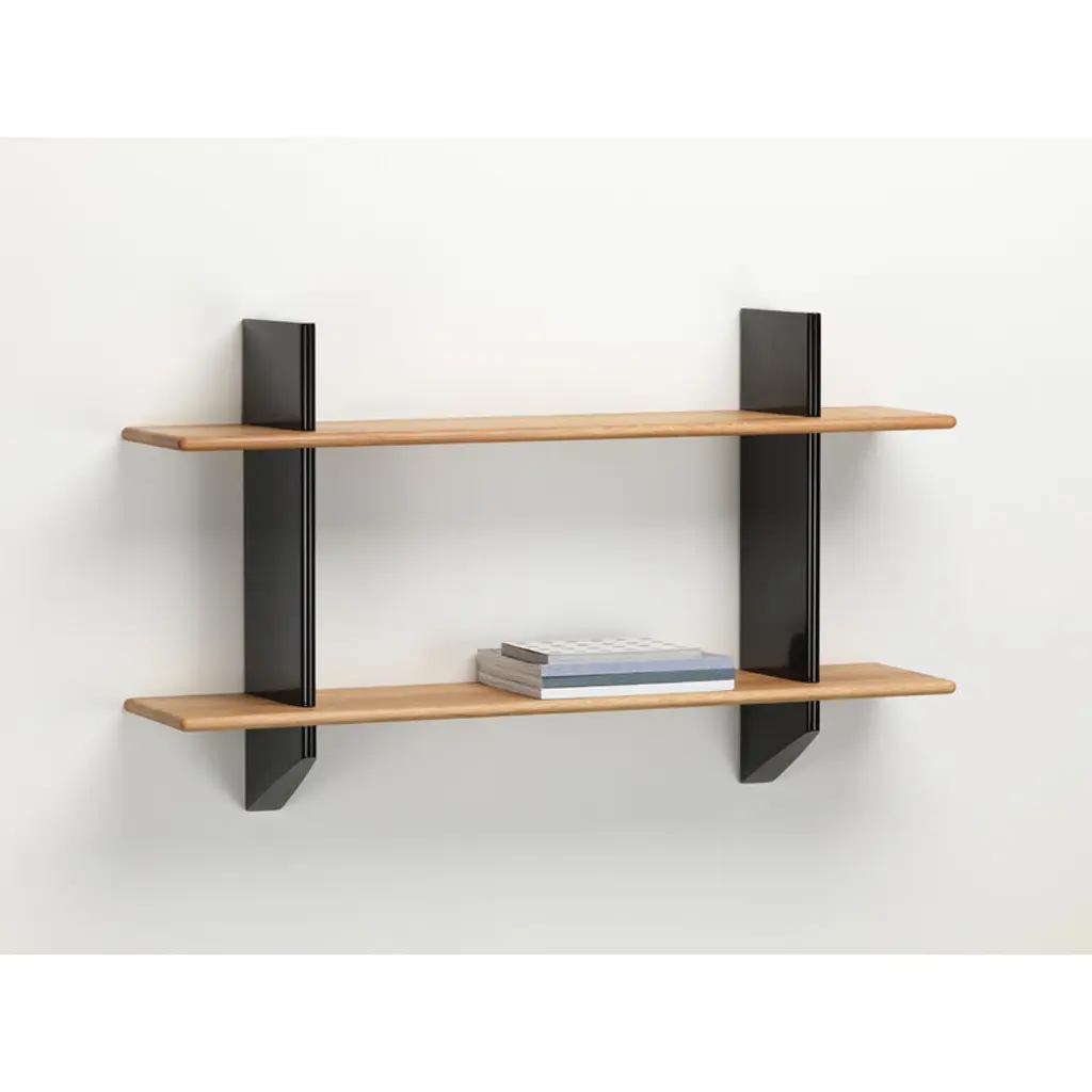 Vitra's Rayonnage Mural is a distinctive wall shelf, designed by Jean Prouvé in 1936, characterized by the geometric shape of its two vertical brackets. A recurring feature in several Prouvé designs, the shape is reminiscent of an airplane or a ship's rudder, and it brings fascinating three-dimensionality to the otherwise understated design. Like most of Prouvé's creations, the Rayonnage Mural was designed for a specific project: the École Nationale Professionnelle in the city of Metz. Made of wood and metal, the shelf is sure to fit a variety of spaces, serving a myriad of purposes. What would you fill it with: books, collectibles or something else entirely?