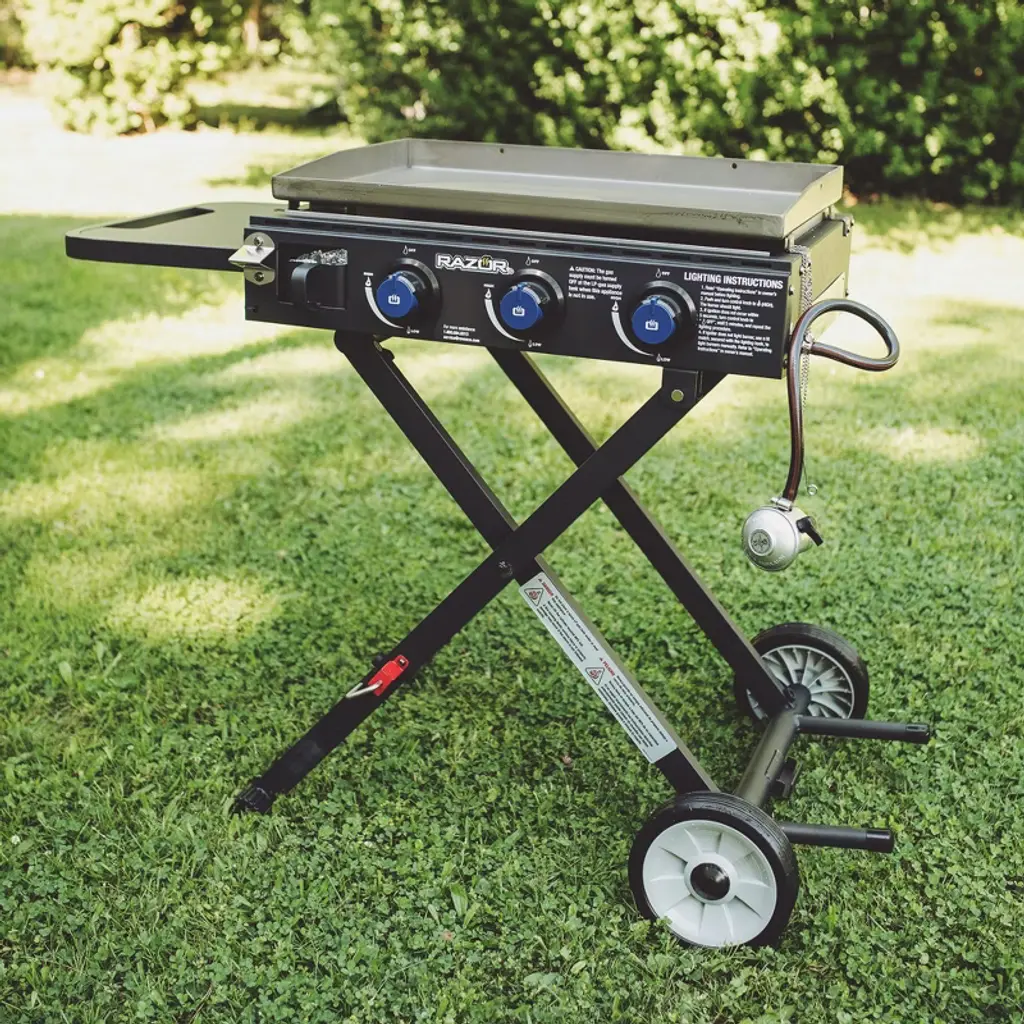 Razor Griddle Portable 3-burner 30,000 Btu Gas Flattop Grill & Griddle Combo With 25" X 16" Cooking Surface Area, Foldable Cart & Side Shelf, Black