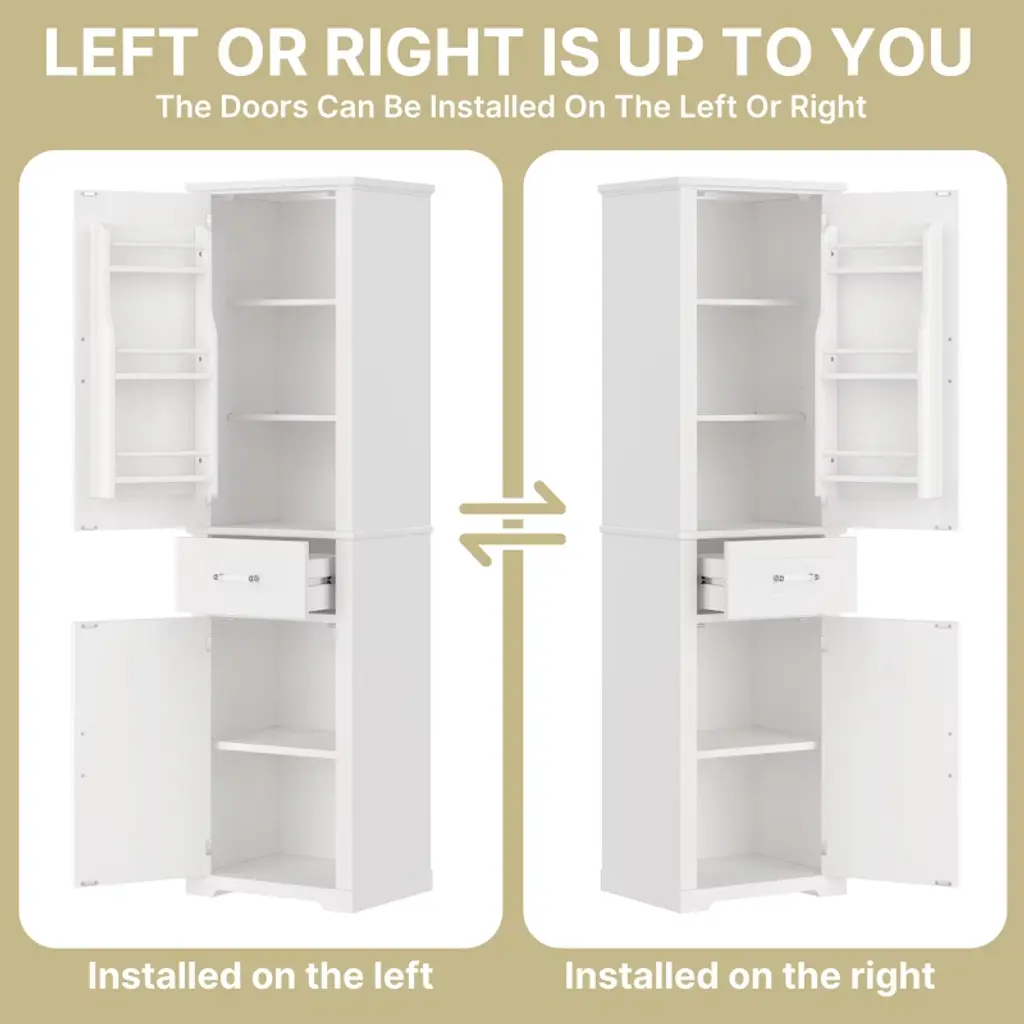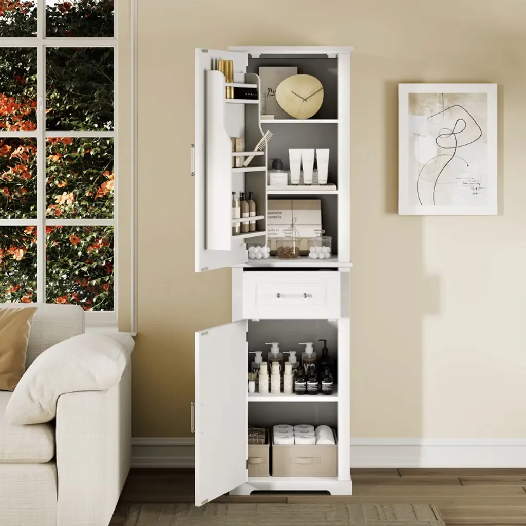 This tall cabinet is versatile. You can use it as a bookcase in your office, a storage cabinet in your bathroom, or a food storage cabinet in your kitchen. This bathroom cabinet has smooth lines and a beautiful design. The modern design can be perfectly integrated into any scene. The combination of adjustable shelves and closed cabinets keeps everything in order in this bathroom cabinet.