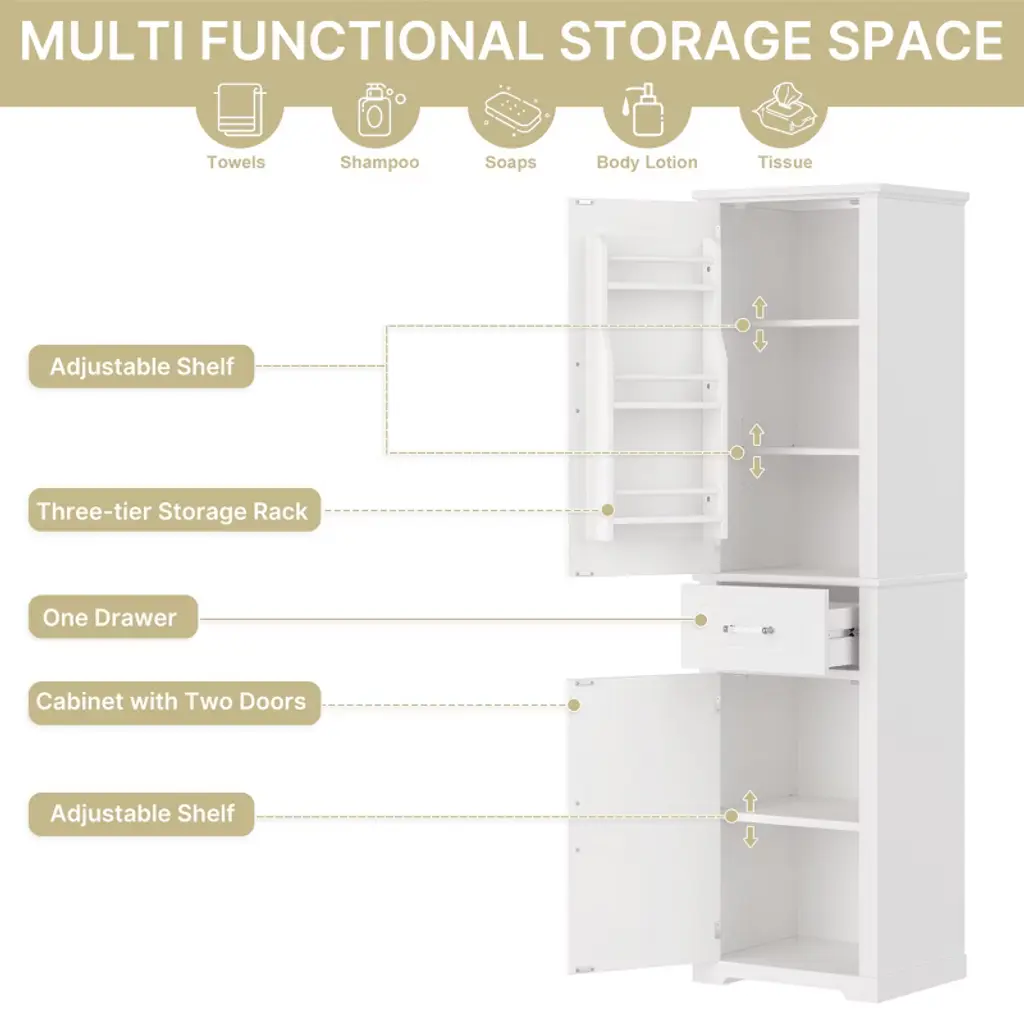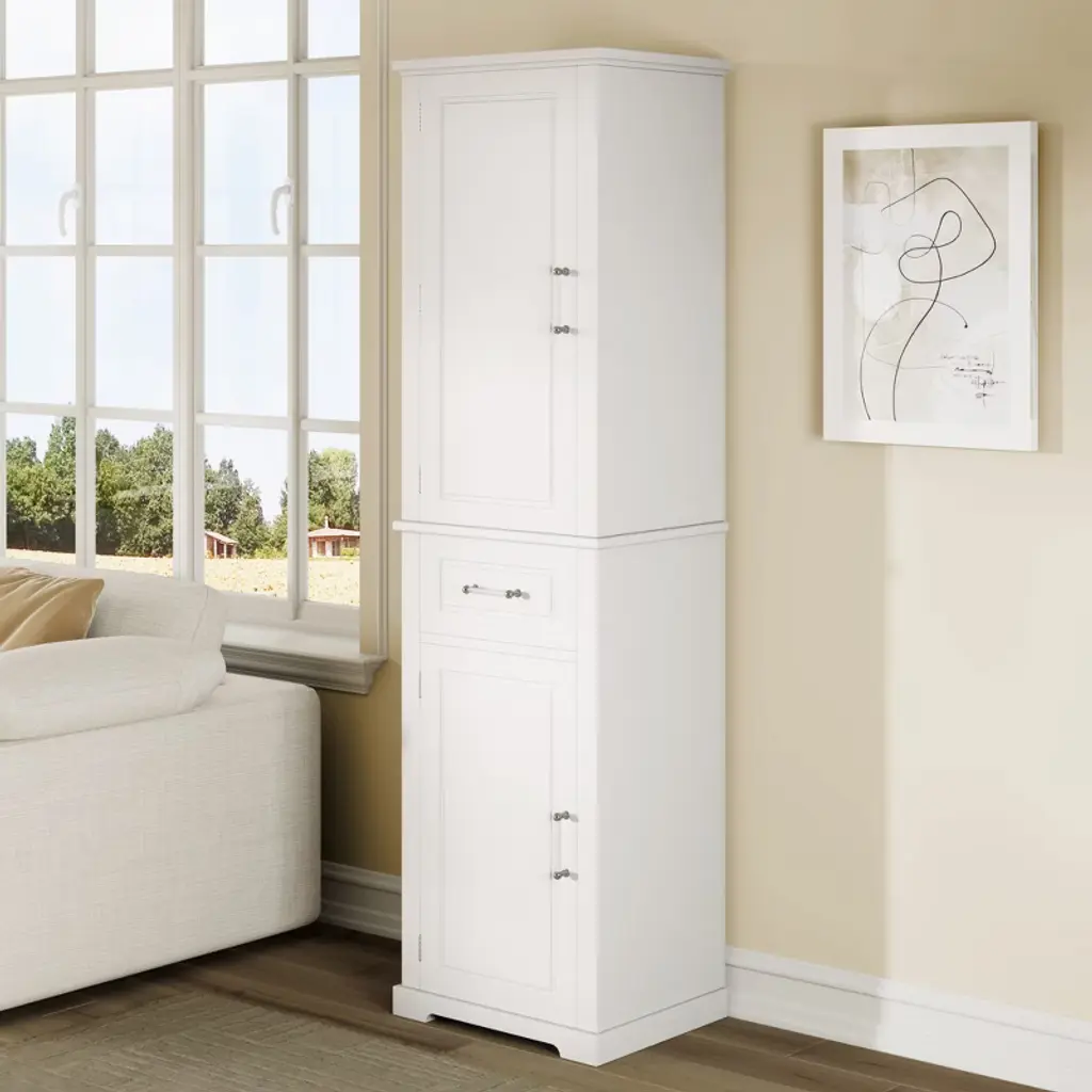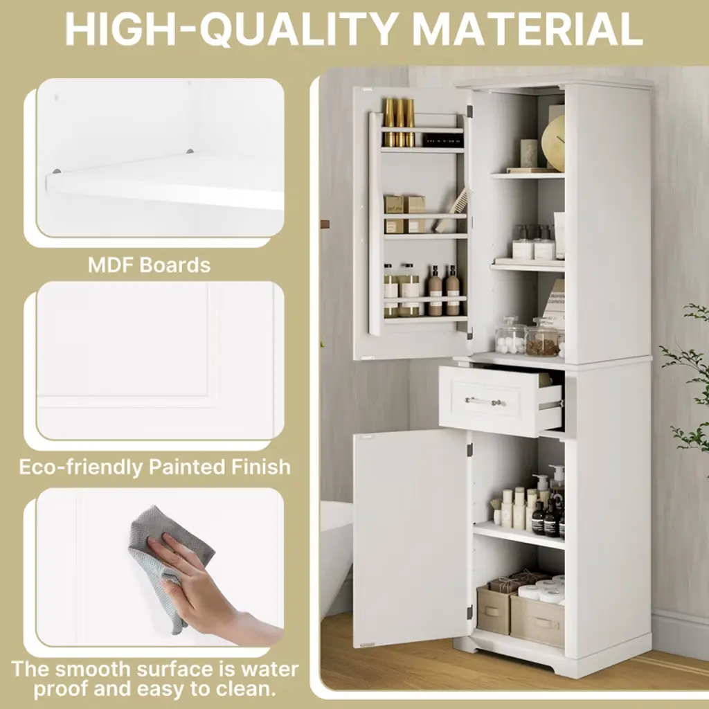 Rbied 20.00 In. W X 15.80 In. D X 72.10 In. H White Bathroom Storage Cabine Linen Cabinet With Adjustable Shelf