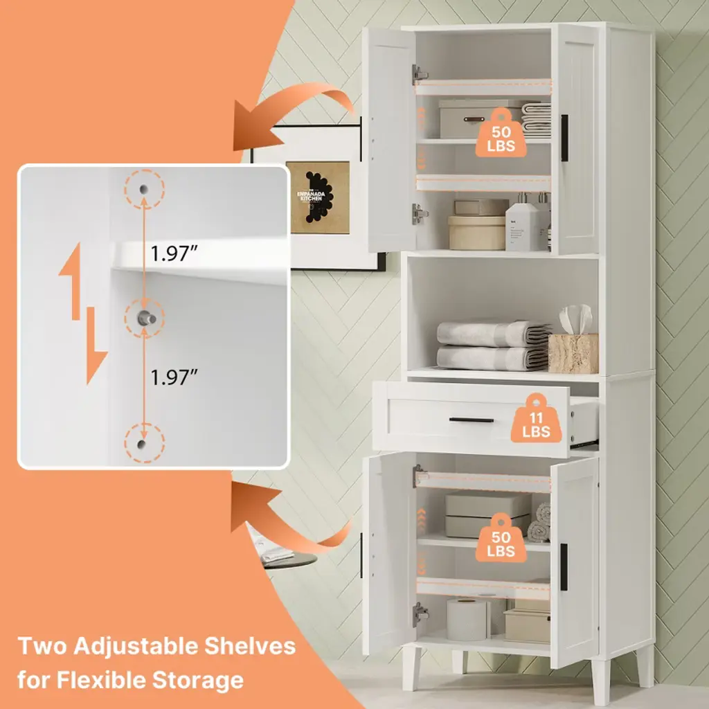 Rbied 23.60 In. W X 13.80 In. D X 70.90 In. H White Bathroom Storage Cabine With Adjustable Shelf