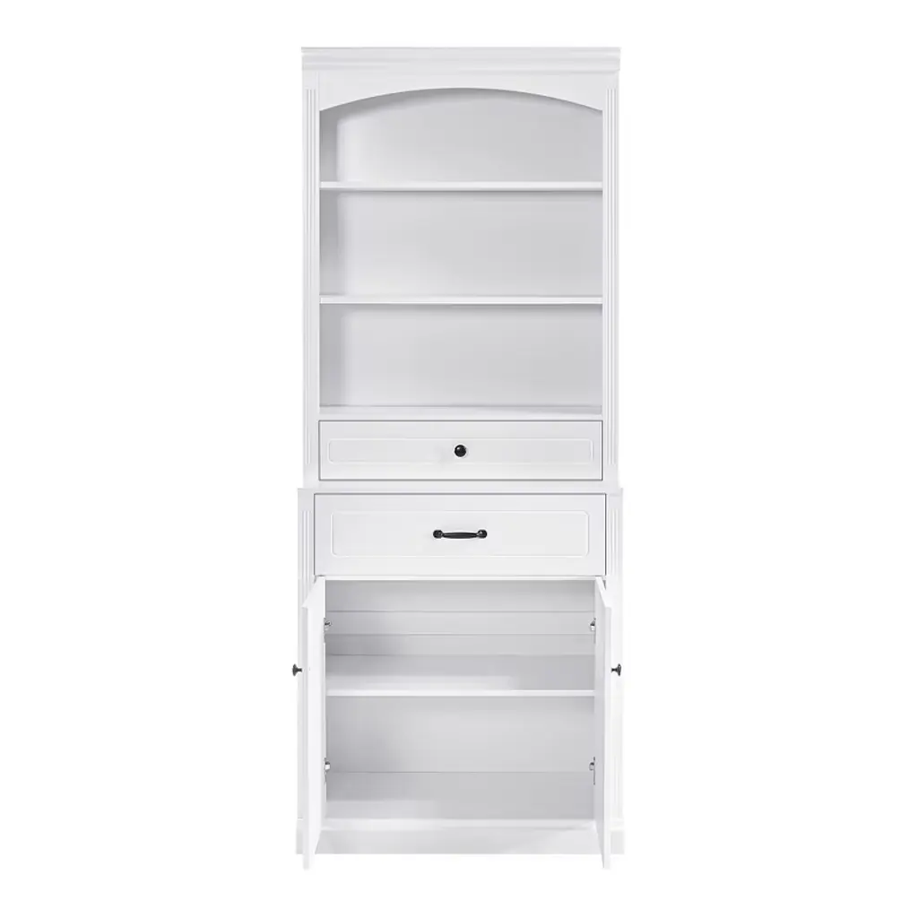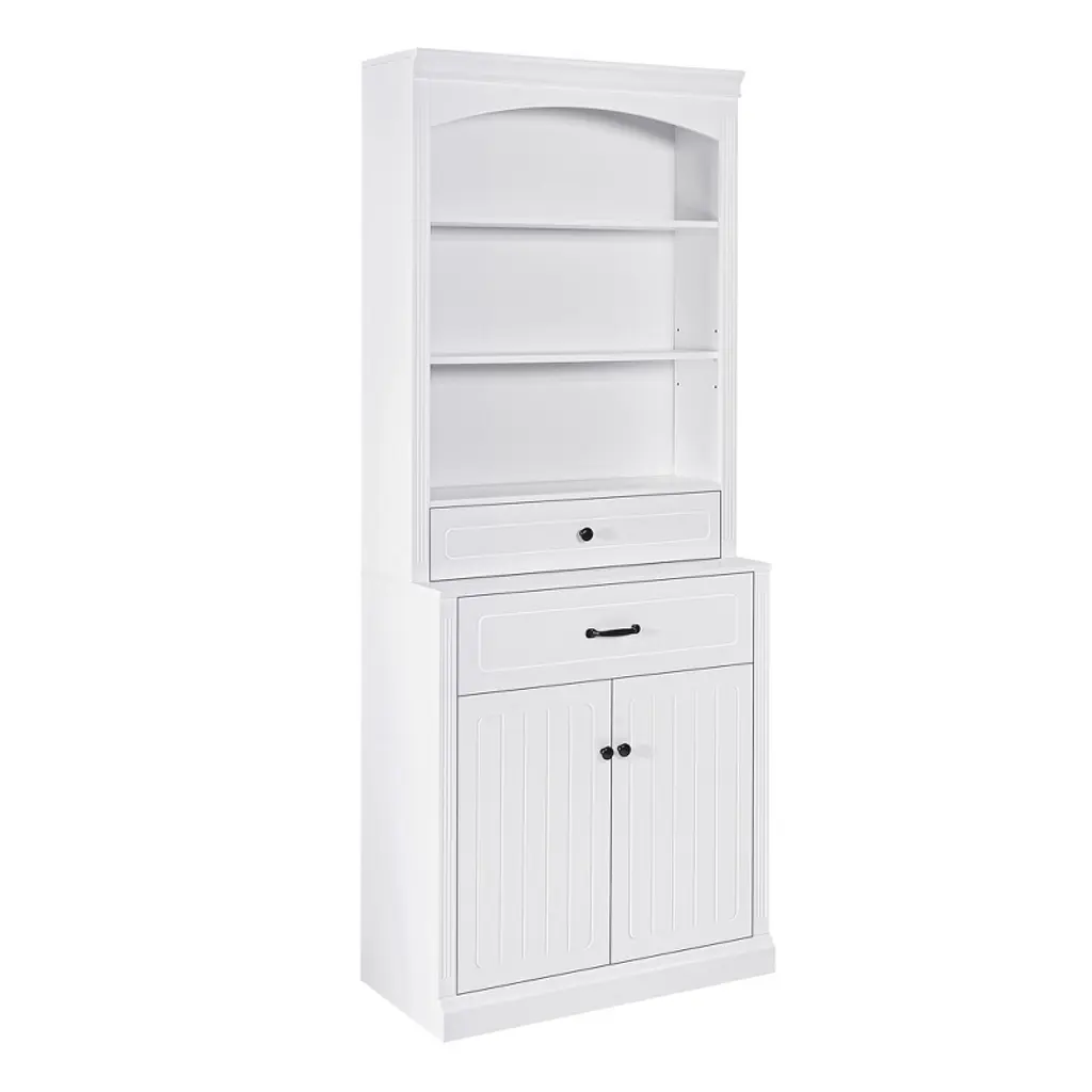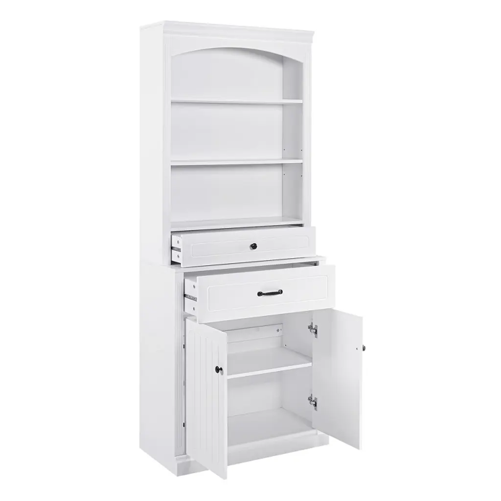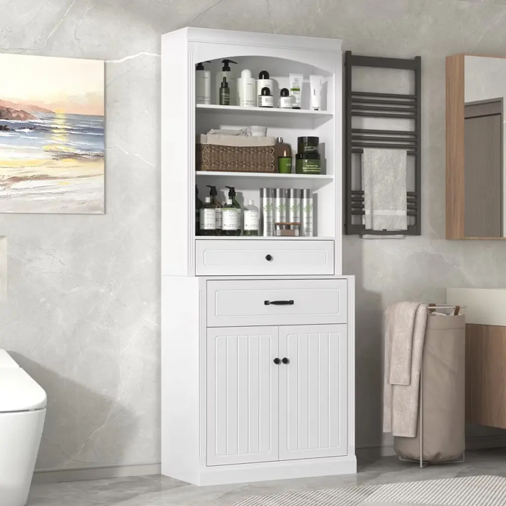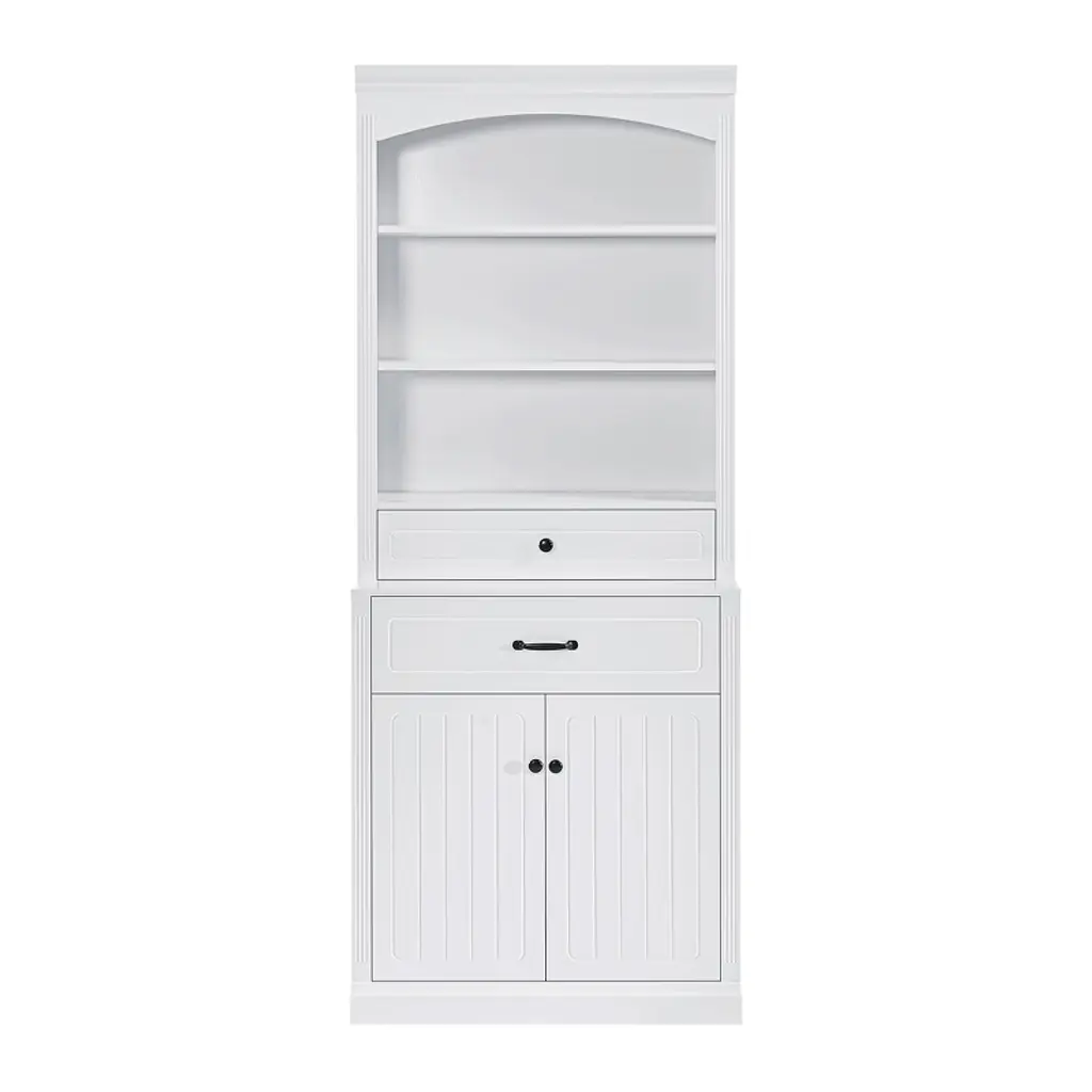Rbied 78.70'' Tall White Storage Cabinet With Two Doors, Drawers, Adjustable Shelf & Three Open Shelves, Durable Mdf Construction