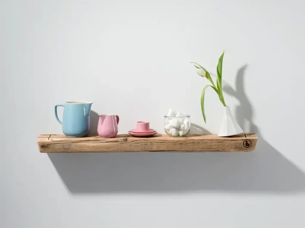 Full of character, this wall shelf made of reclaimed wood is not only great for storage, but adds a stylish touch to the home. The Eeclaimed Wood 01 Wall Shelf comes with bookends which can be placed easily and flexibly in the grooves cut lengthwise and crosswise into its surface. This keeps books on board and in the right place. And the grooves can also be used to hold treasured prints, photos, and postcards.The Reclaimed Wood 01 Wall Shelf is available in three lengths. The full load-bearing capacity of the shelf up to 20 kg can only be met if it is securely and correctly attached to the wall.Material: Unpainted reclaimed wood; sturdy powder-coated metalPurchase includes: Wall shelf, Bookends, mounting hardwareThe weld & co Reclaimed Wood collection aims to preserve old materials by using them to make something new. Naturally aged wood is used to create furniture and home accessories that also feature elegant components made of powder-coated steel. These two elements unite to produce an attractive aesthetic that makes a clear statement. Natural materials weather and age with time, resulting in a completely new look and feel. When combined with robust new materials, they create furniture which is truly timeless.