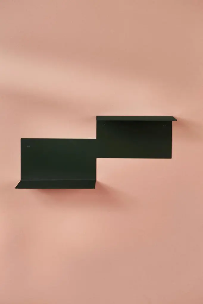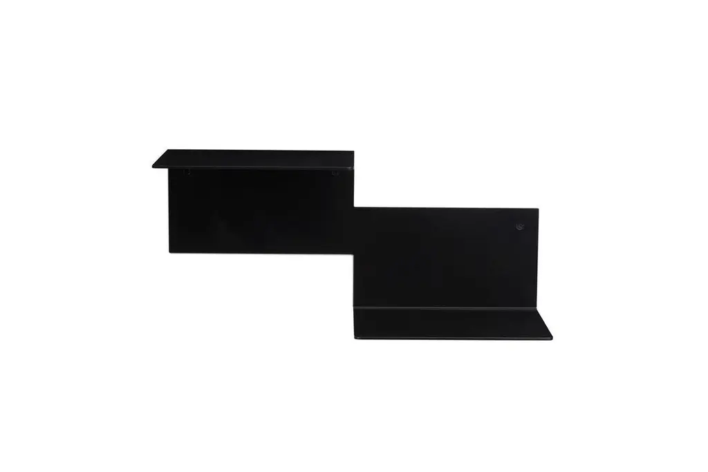 Repeat shelf black Noir Left by Warm NordicDimensions: D60 x W23 x H26cmMaterial: Powder coated aluminiumWeight: 5 kgAlso available in different colors. Flexible shelf unit that can be mounted on the wall and offers endless possibilities for simple and elegant storage no matter the size. Repeat comes as a right and left unit, both having two staggered shelves. The modules can be used individually for storage in the hallway, bathroom and nursery or combined to cover half or whole walls in the living room with graphical patterns. The Repeat shelf unit is made of powder-coated aluminium. Different colours make it possibly to play with the expression of the setup, from a monochrome, minimalist look to a bolder and more colourful version that accentuates the dynamics of the Repeat shelf unit.Warm Nordic is an ambitious design brand anchored in Nordic design history and with a timeless, aesthetic style that inspires you to appreciate the little things in life. The company is the result of several years’ intense work on developing a new design brand with design history, quality and personality at its core. Warm Nordic boasts a colourful and charming universe of furniture, lamps and accessories full of personality. Our designs encapsulate the Nordic spirit, which in its essence is timeless, inclusive and warm.