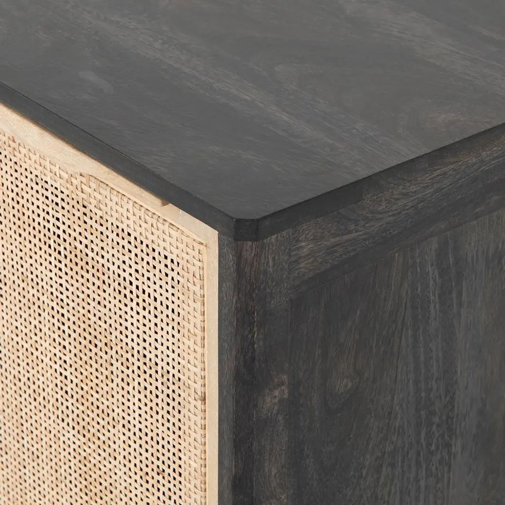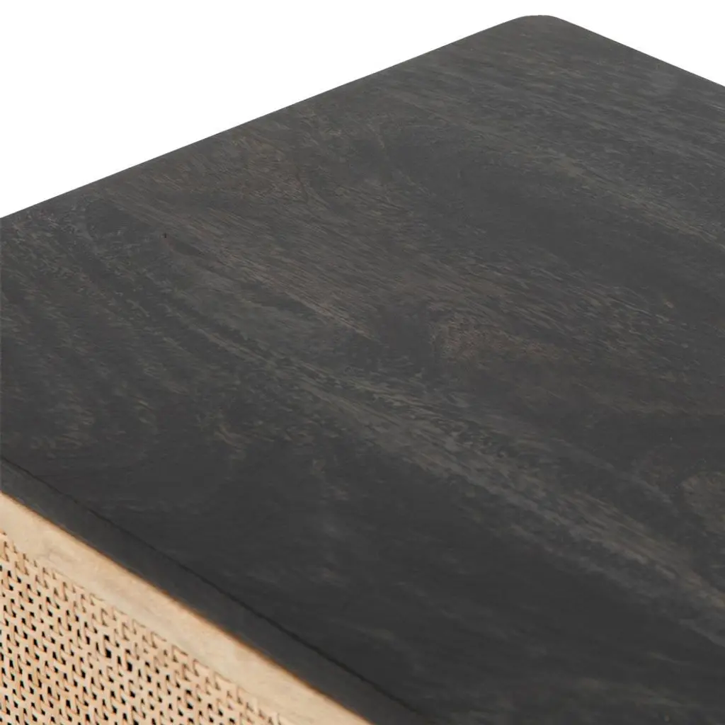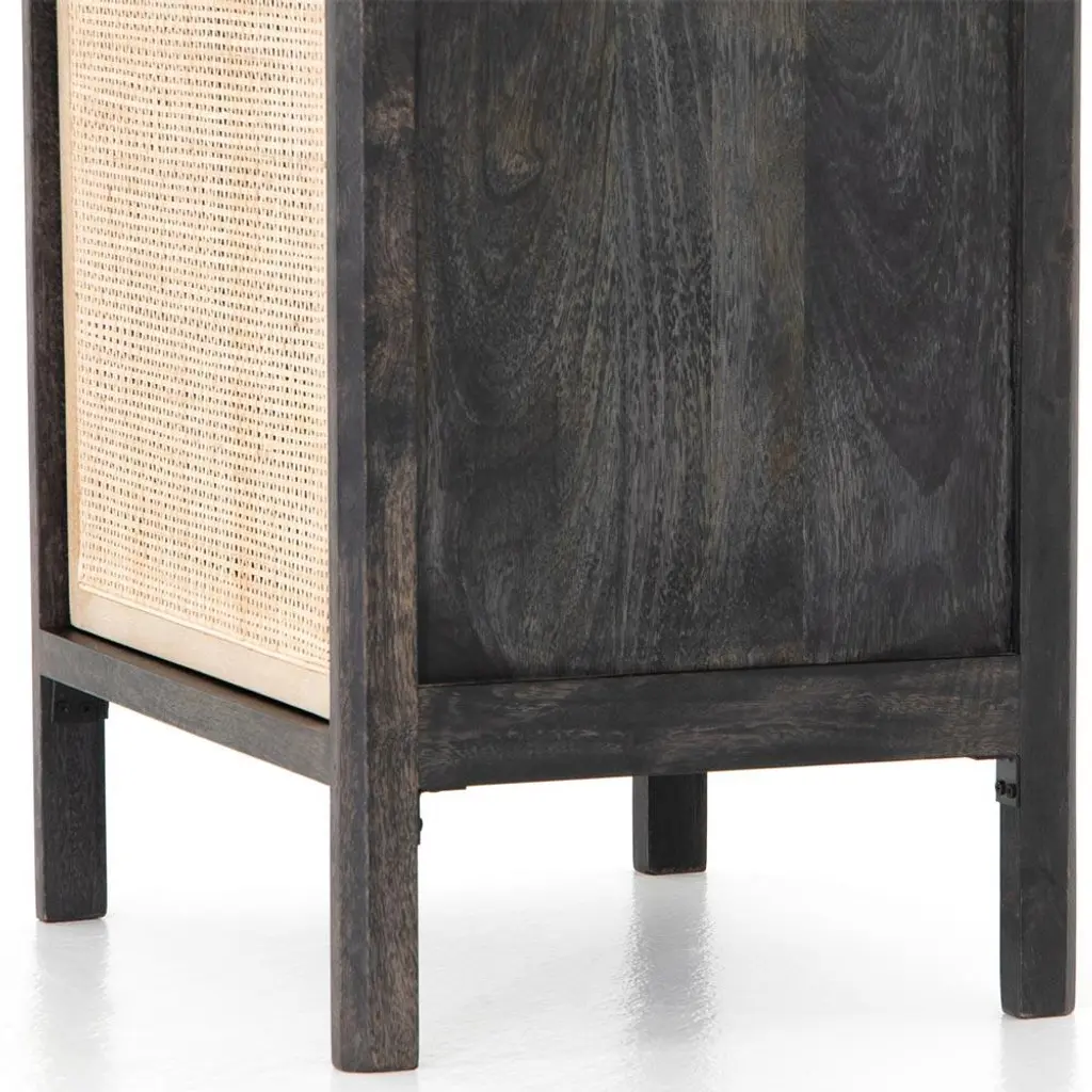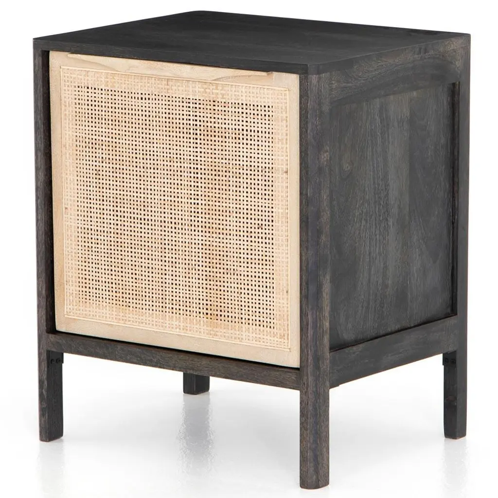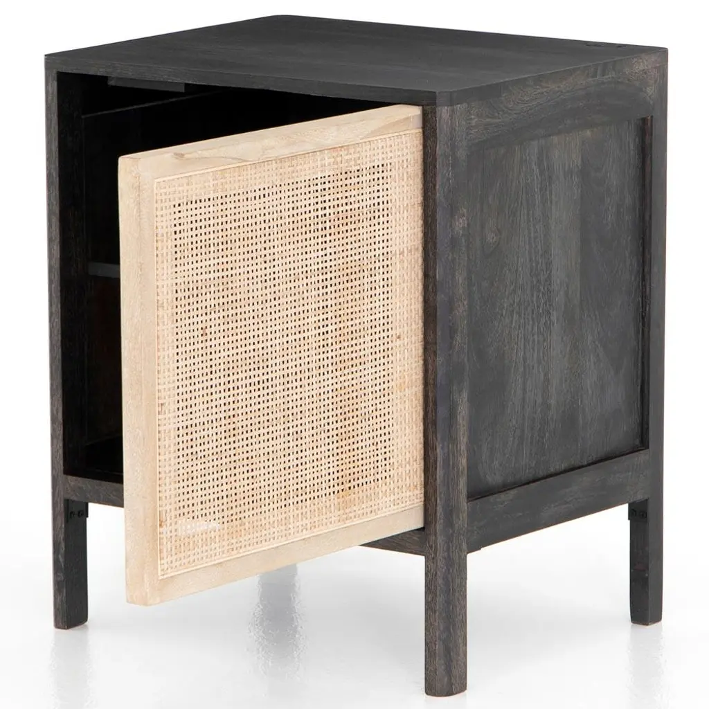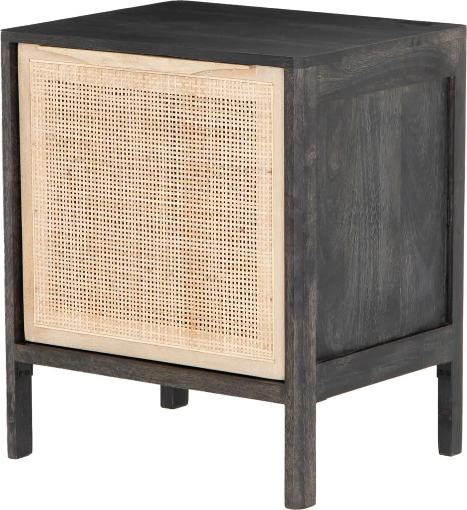 Rhian Coastal Natural Woven Cane Black Mango Wood Removable Shelf Right Facing Nightstand